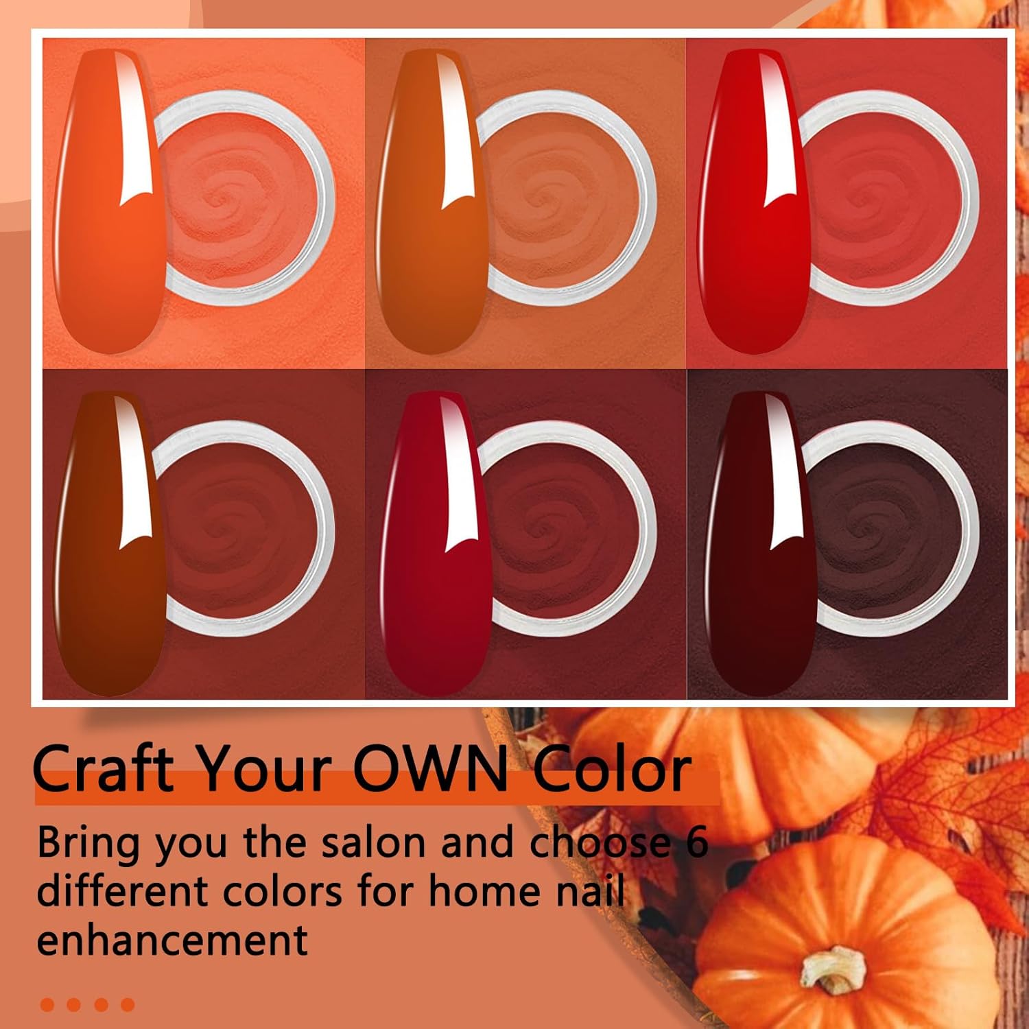 6 Colors Dip Powder Set, Orange Dark Red Wine Christmas Dipping Powder Color Set, Glossy Nail Art Manicure DIY Salon Home Gift for Ladies,YYSDDPS-02-6pcs