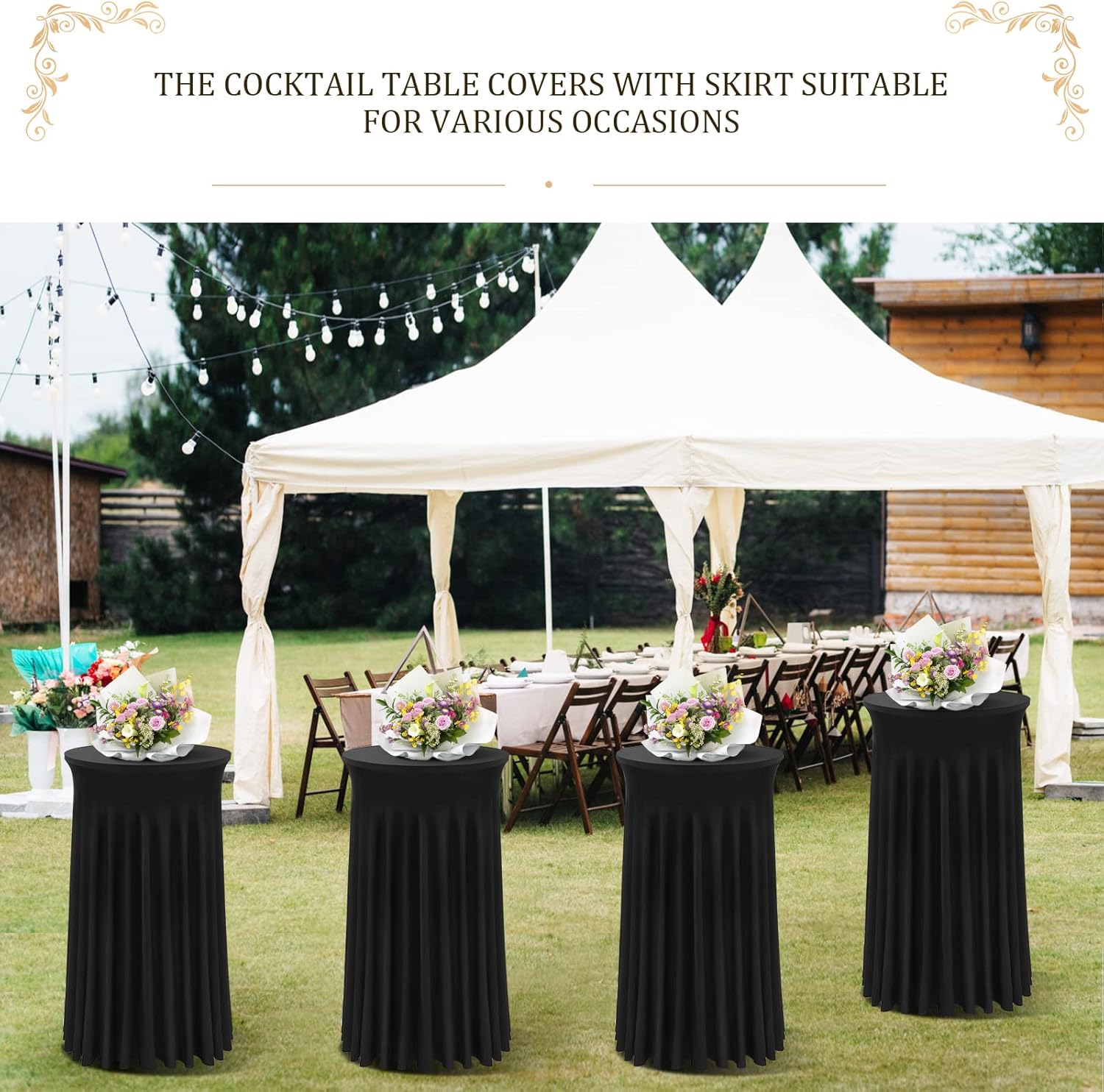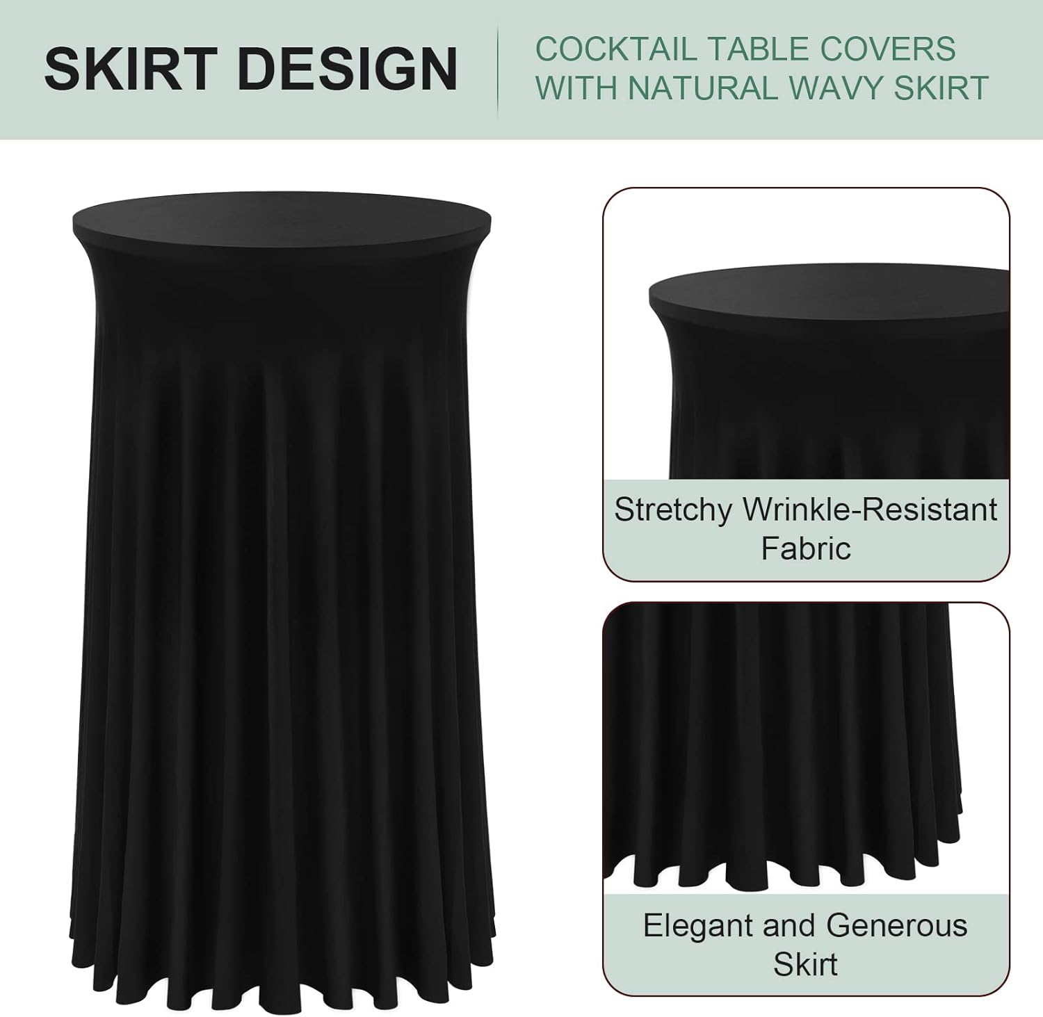 Cocktail Table Covers - 2 Pack 24"x 43" Black Cocktail Table Tablecloth with Natural Wavy Round Skirt for Bar Wedding Party Banquet