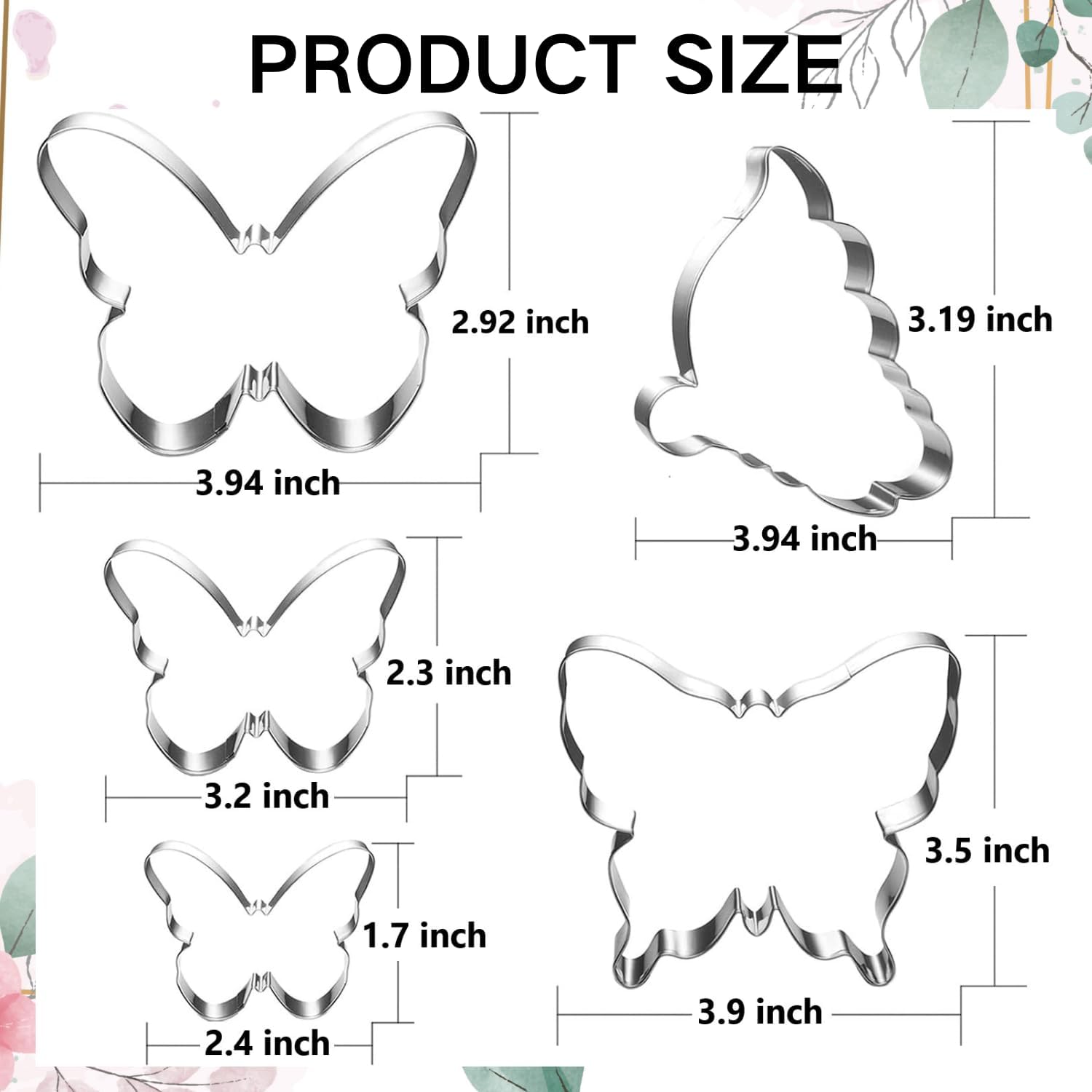 • Package:5 butterfly themed shapes cookie cutters.Deep 1 inch.Great size for the sugar cookies decorating.