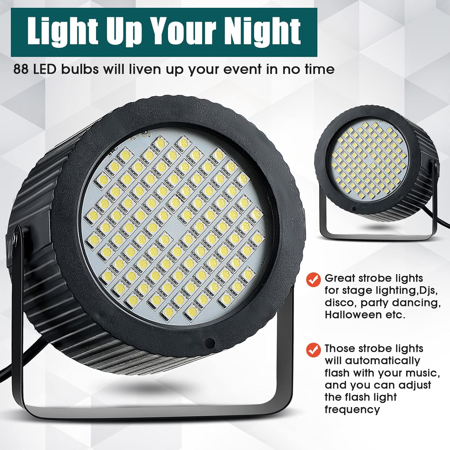 2 Pcs Bright White Strobe Light 88 LEDs Flash Party Lighting Speed and Sound Modes Flashing Lights Stage Lights for Christmas Easter Birthday Party Room Dance DJ Bar Karaoke Show Wedding