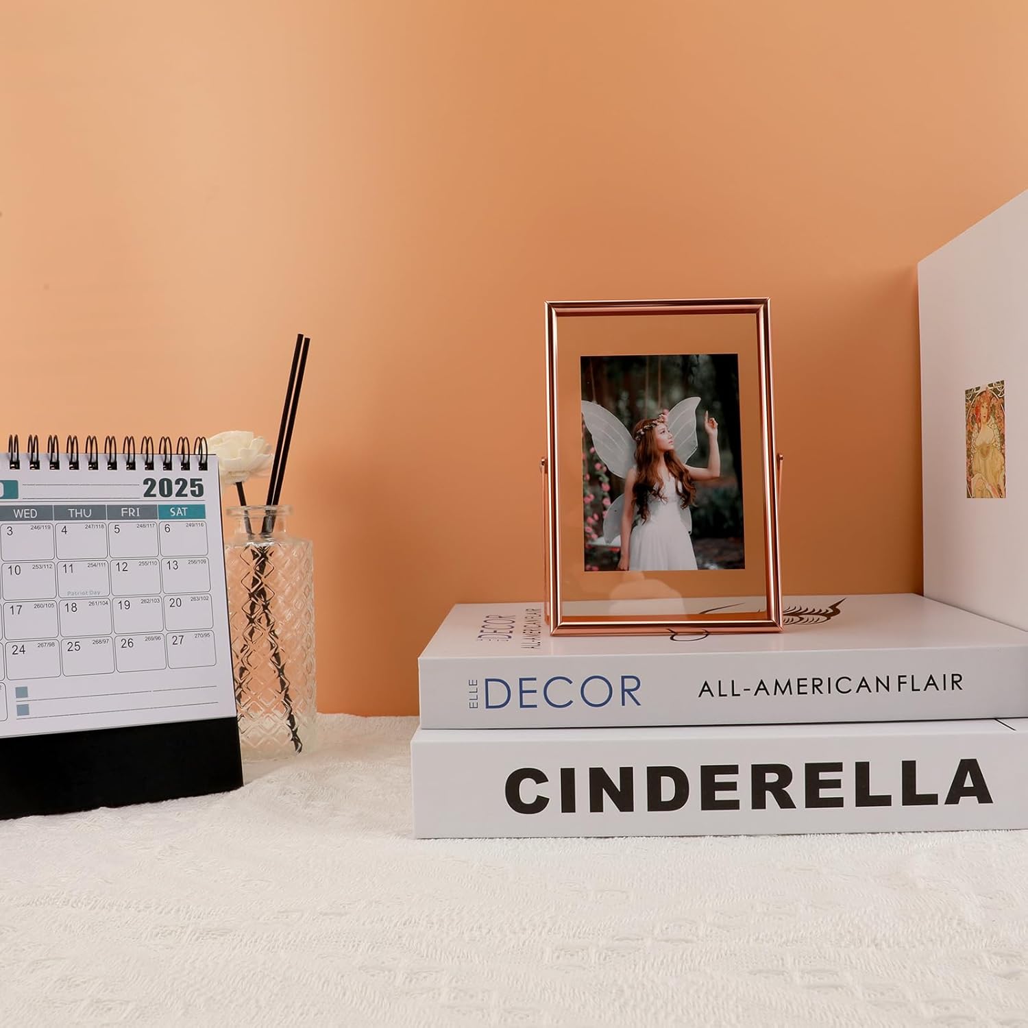 Rose Gold Floating Frame, 4"x6", Vertical, For Picture 3.5x5, 3x4, 2x3, Mini Tabletop Photo Frame, Classy For Festival, Wedding, or Birthday, Home or Office Decoration