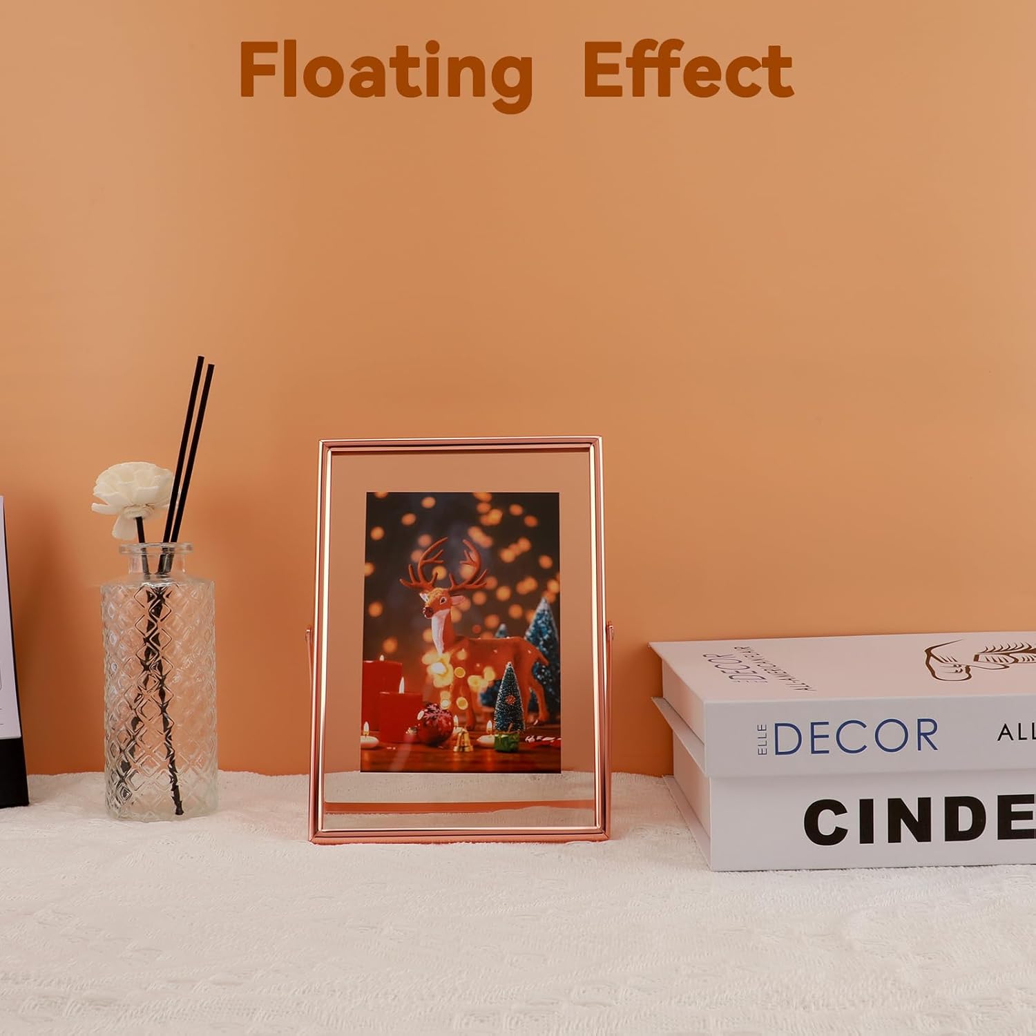 Rose Gold Floating Frame, 5"x7", Vertical, For Picture 4x6, 3.5x5, 2x3, Tabletop Use, Classy Gift For Anniversary, Wedding or Birthday