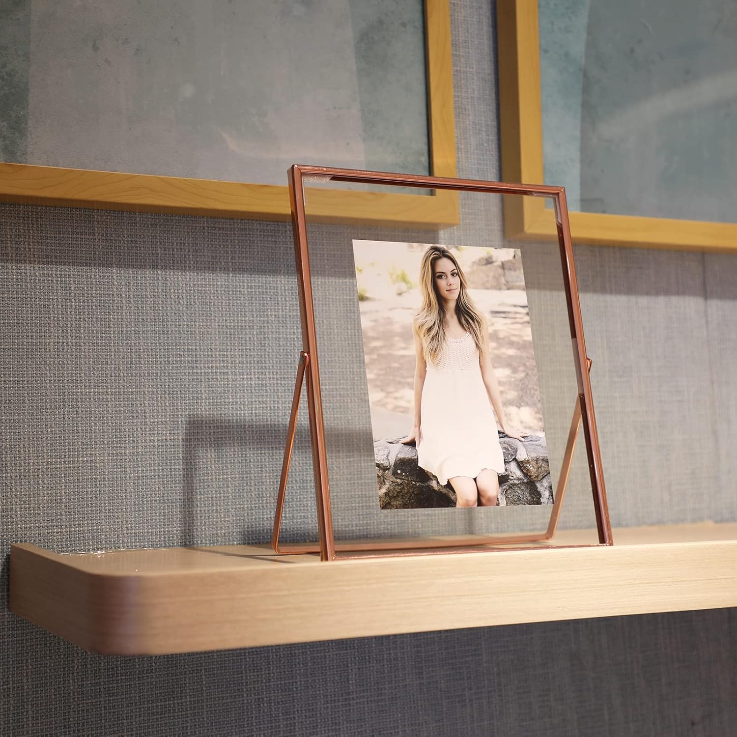 Rose Gold Floating Frame, 8"x10", Vertical, For Picture 7x9, 6x8, 5x7, Tabletop Shelf Photo Frame For Lady or Girl, Classy Gift For Anniversary, Wedding, or Birthday