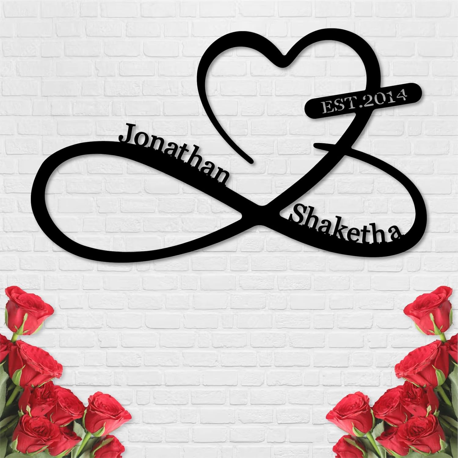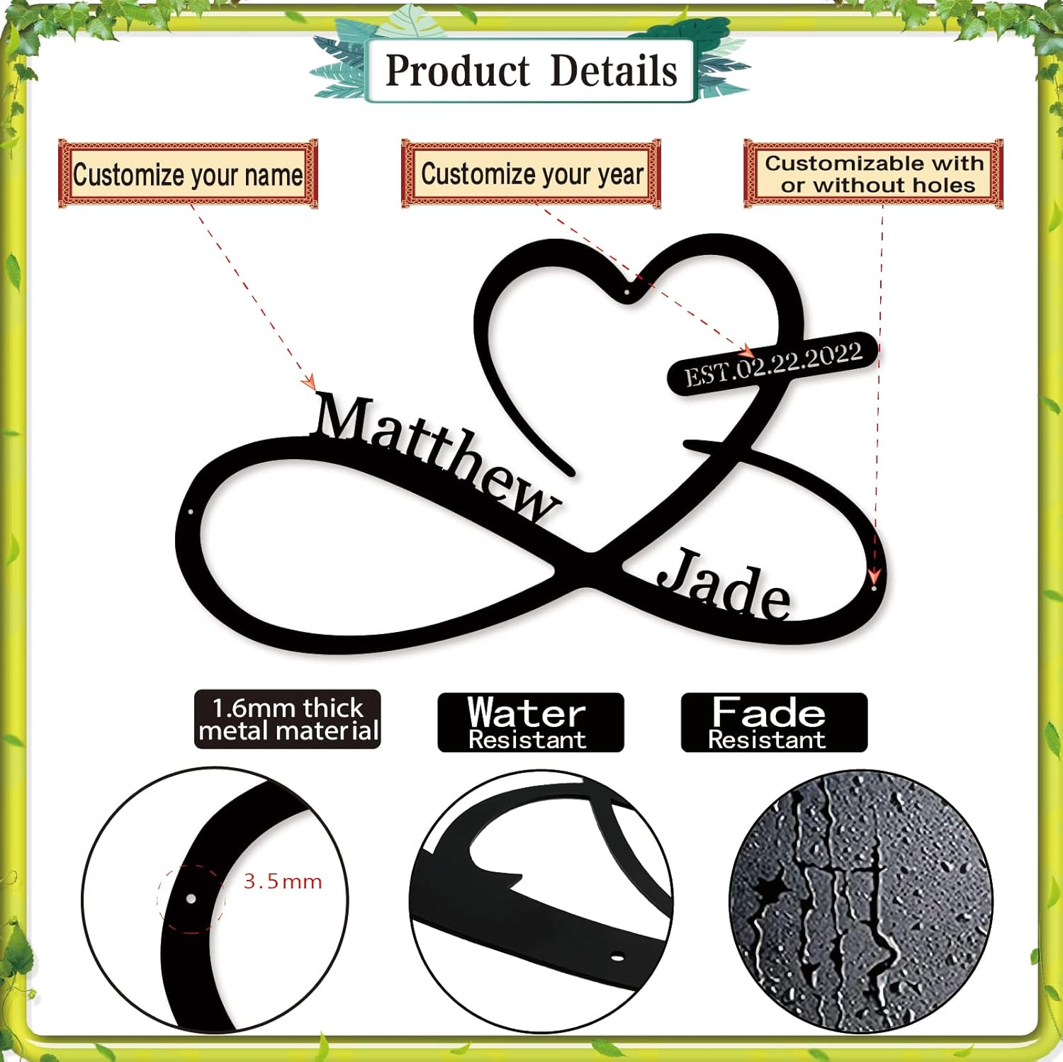 • Personalized Heart Design: Celebrate love with a customizable metal sign featuring intertwined names and a heart-shaped motif, perfect for showcasing special relationships.