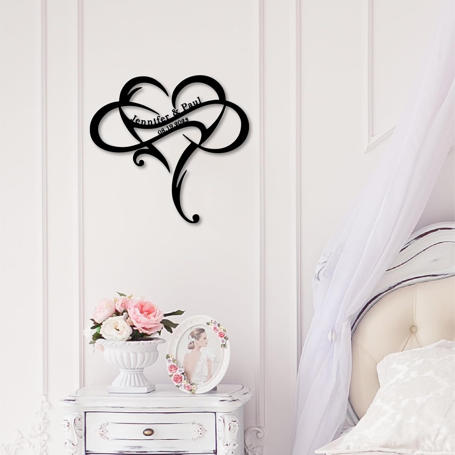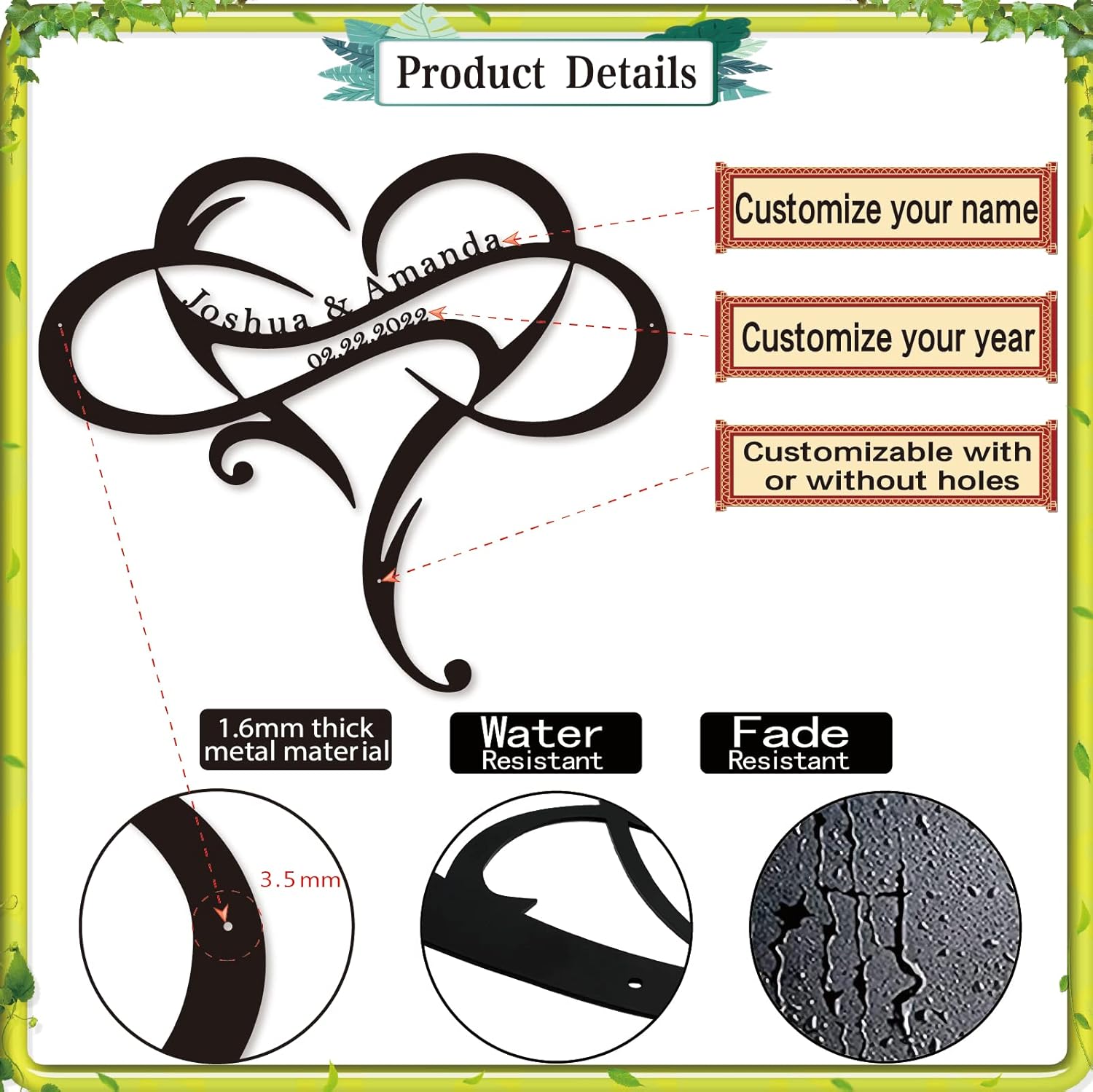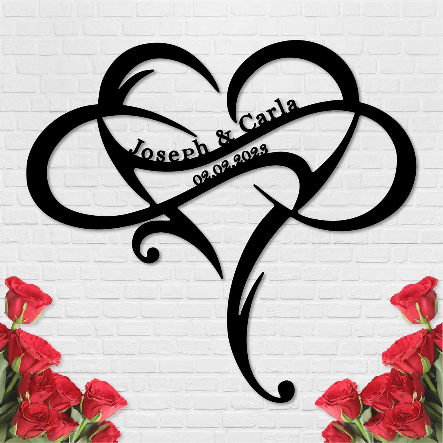• Personalized Heart Design: Celebrate love with a customizable metal sign featuring intertwined names and a heart-shaped motif, perfect for showcasing special relationships.