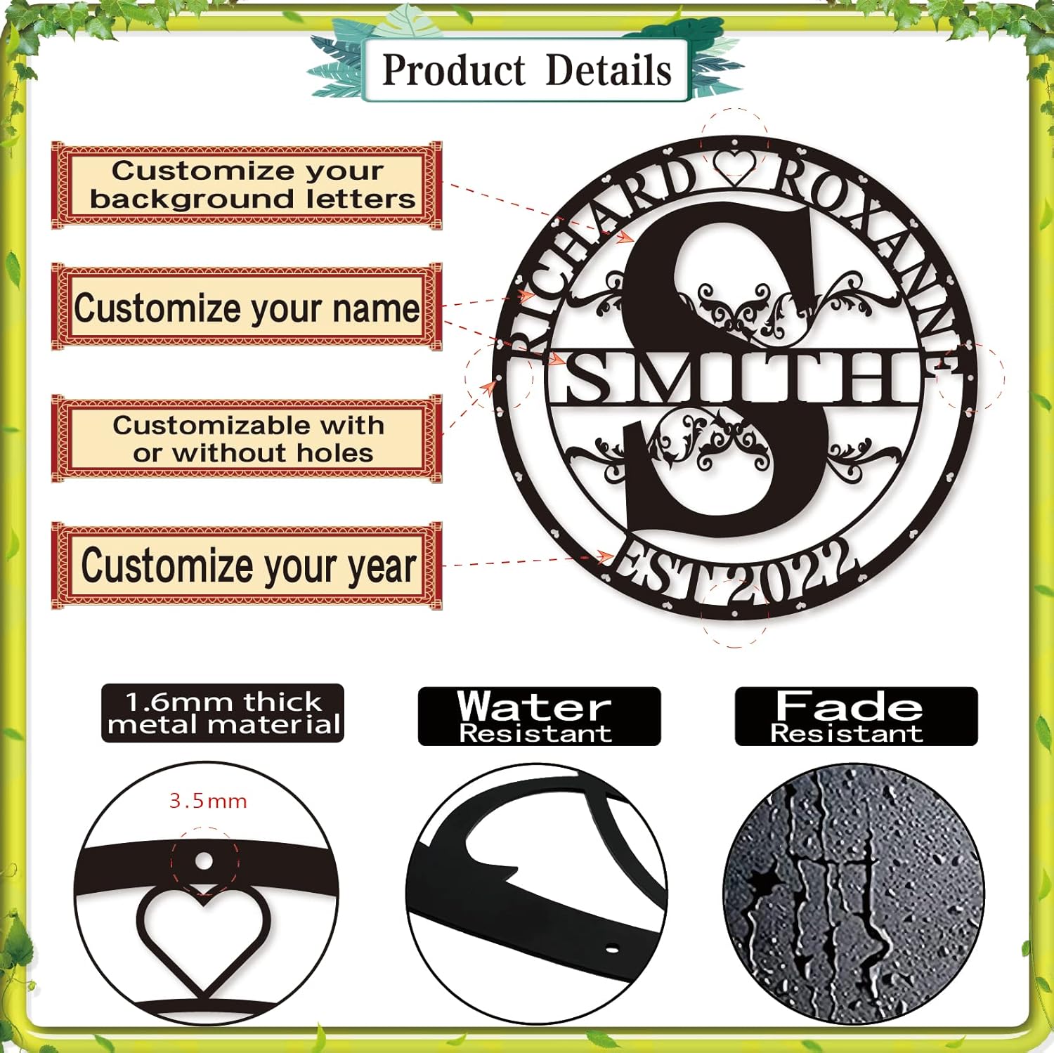 • 🎁 Great Service - Our metal outdoor name sign can be produced quickly. If your metal custom name signs are damaged or incorrect for any reason, please contact us with a picture of the item and we will happily work with you to provide a replacement!