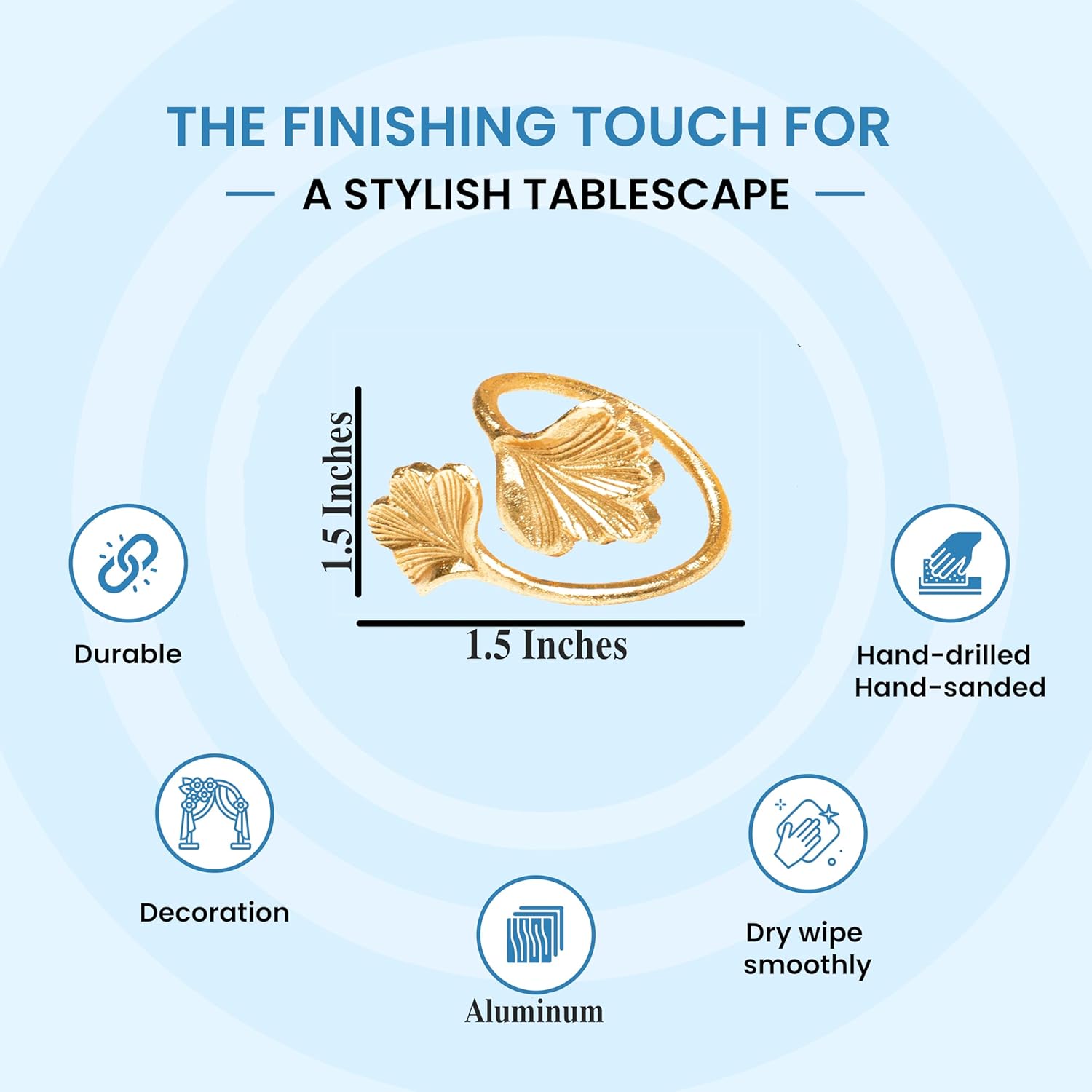 Decorative Gold Napkin Rings Set of 10 - Ginkgo Leaf Lightweight Metal Napkin Holders for Wedding Party Holiday Banquet Christmas Dinner Delicate Serviette Buckles Decor - CLEENTABLE