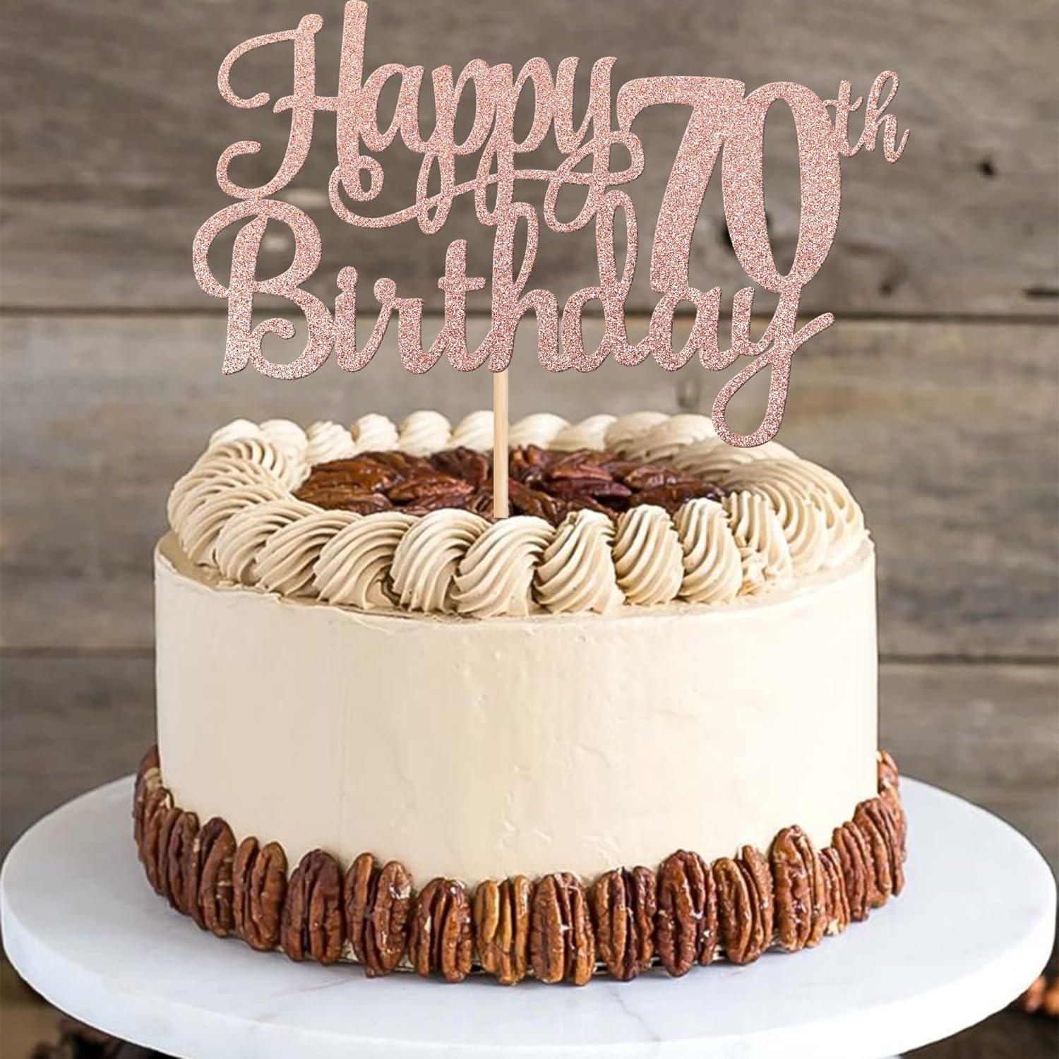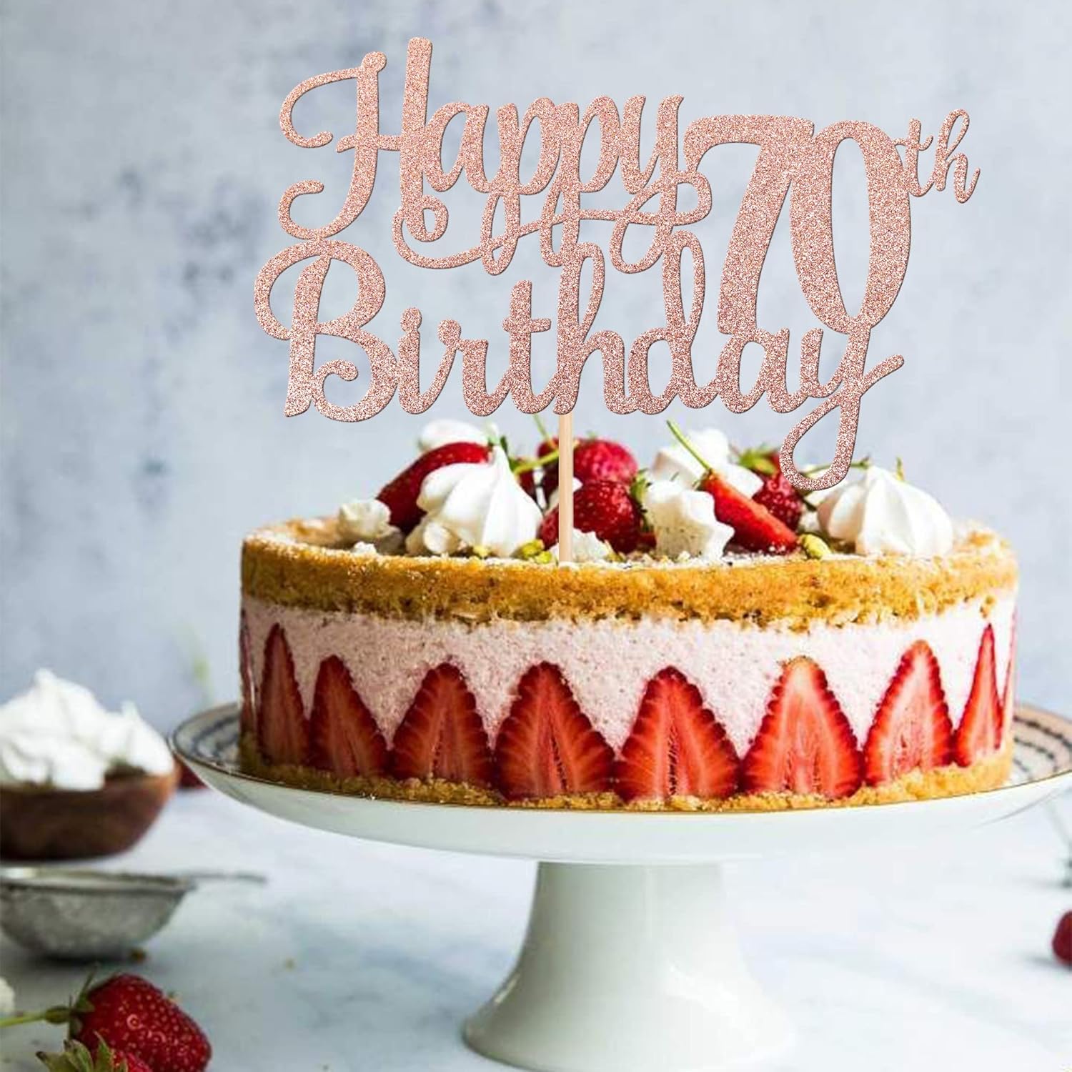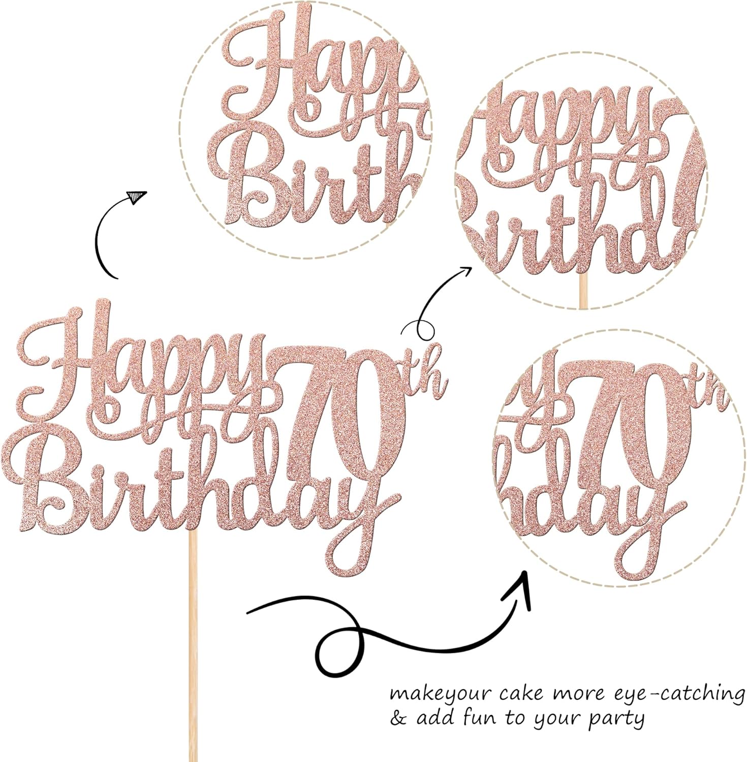 1 PCS Happy 70th Birthday Cake Topper Glitter Cheers to 70 Years Birthday Cake Pick Seventy 70 Fabulous Cake Decoration for Happy 70th Birthday Anniversary Party Decorations Supplies Rose Gold