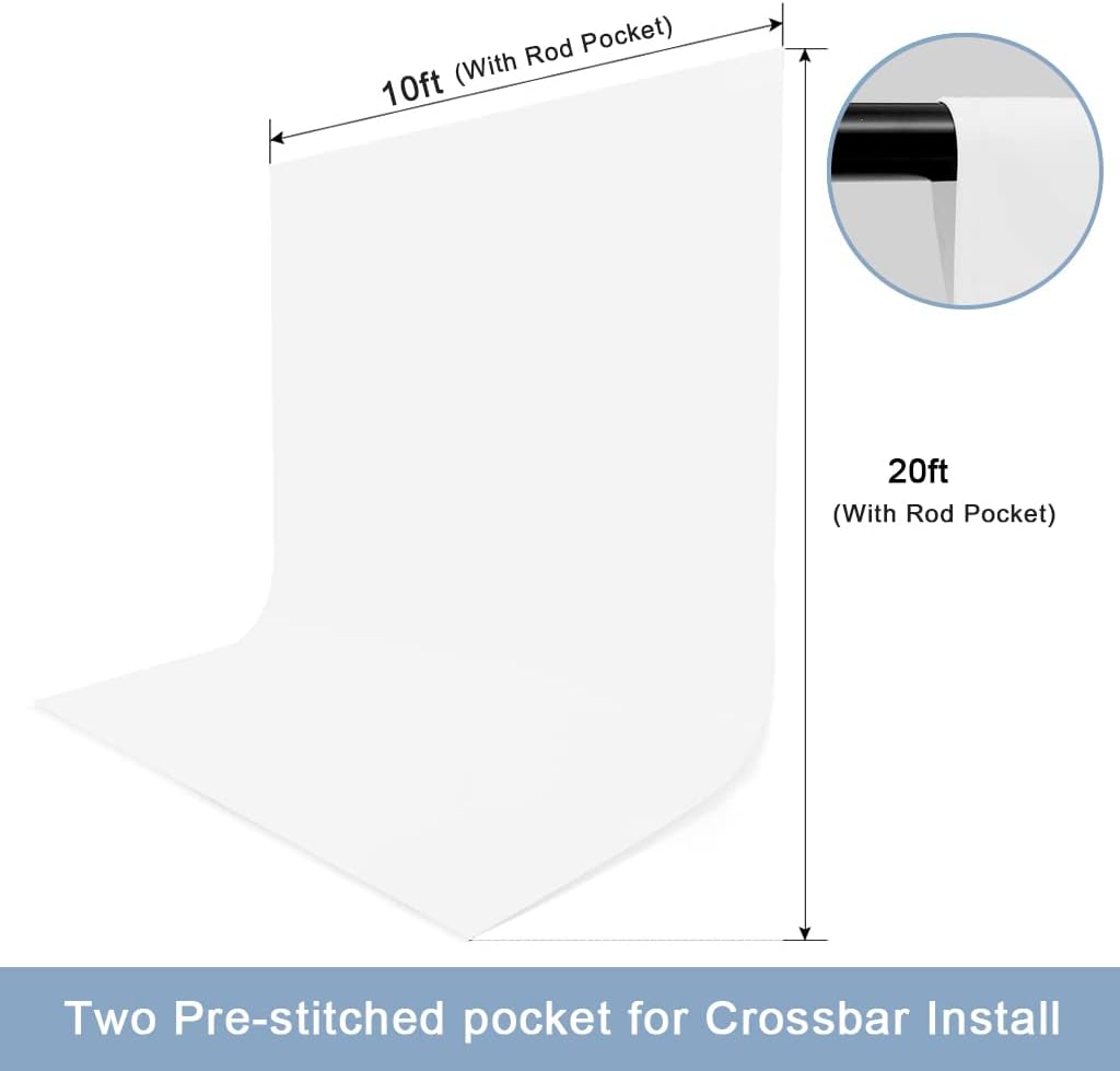 • 【PACKAGE INCLUD & WARRANTY】1pc 10x20ft white backdrop and 4 spring clamps in package; Backdrop stand NOT included. 24-hour friendly customer service, 12 months after-sales quality assurance, please kindly contact us if any question.