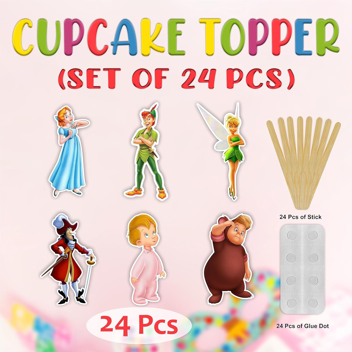 • 🧚 Magical Petr Pan Cupcake Toppers – Features Petr Pan, Tinker Bell, Captain Hook, and fairy tale details that instantly transform cupcakes into themed treats.