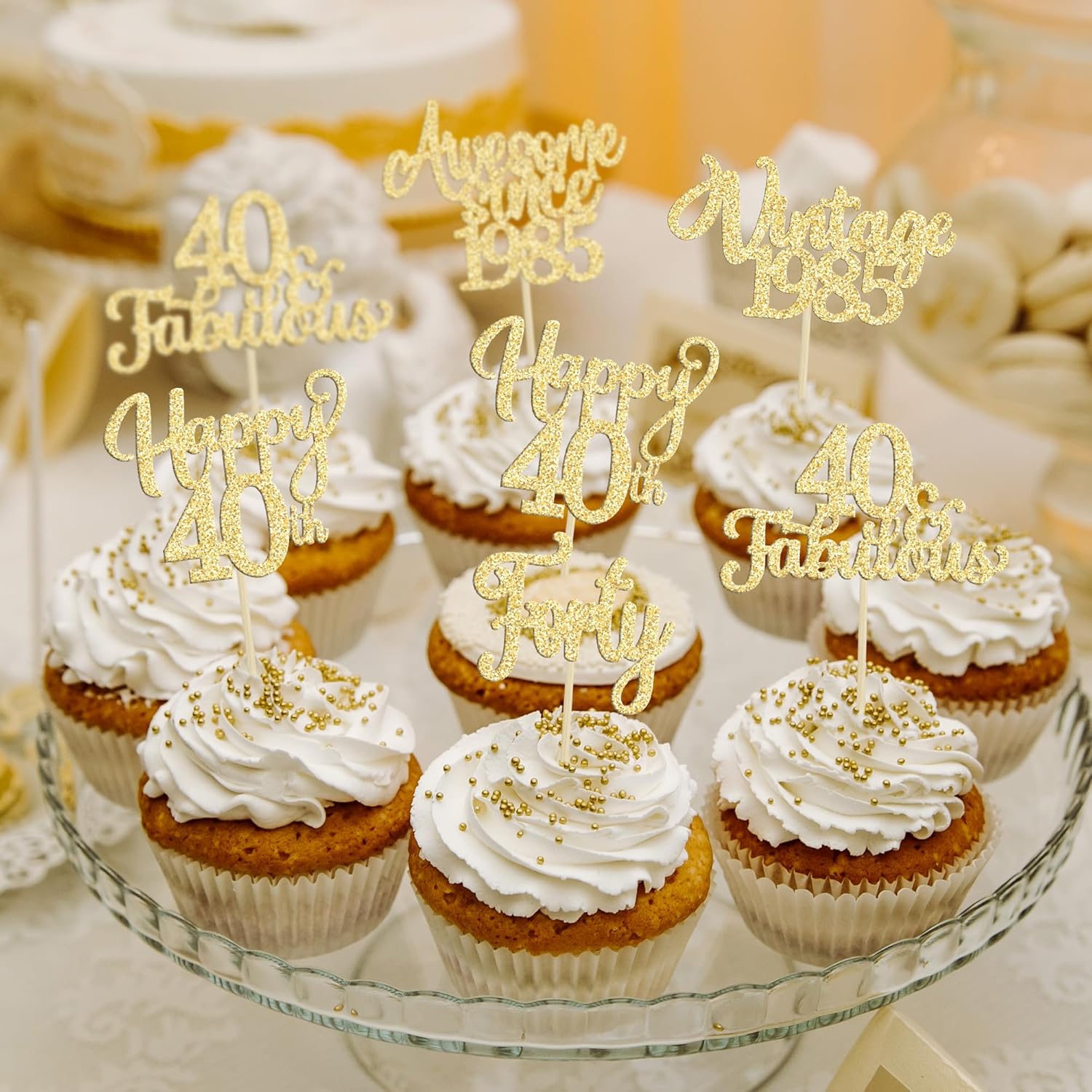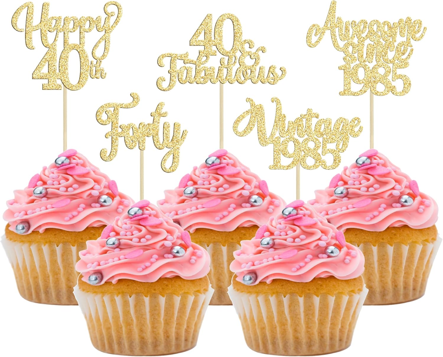 30Pcs Vintage 1985 Cupcake Toppers Glitter Forty Happy 40th Birthday 40 Fabulous Cupcake Picks Cheers to 40 Years for 40th Birthday Wedding Anniversary Party Cake Decorations Supplies Gold