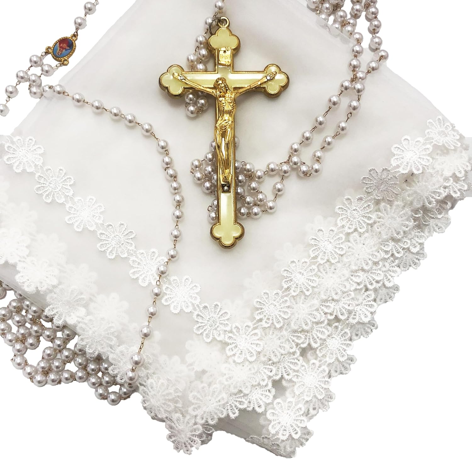 • The Lasso or Lazo Rosary symbolizes the bride and groom ar e forever bound together in unity by God. 8mm Imitation Pearl Bead, the pearls are super elegant and realistic . 5.7" cross is nice and heavy.