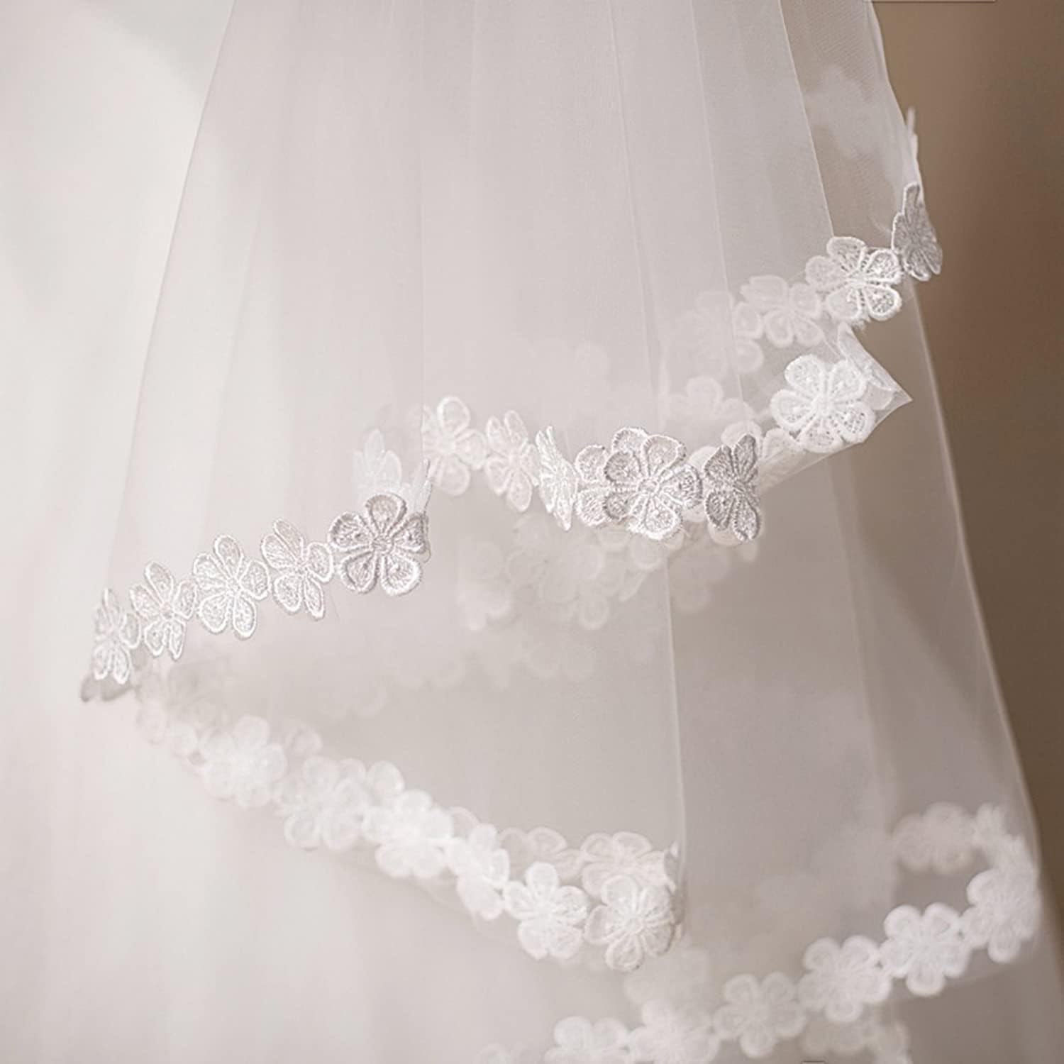 • The veil measures about 67 inches wide X 31 inches long.made of high quality tulle material, added with floral lace appliques