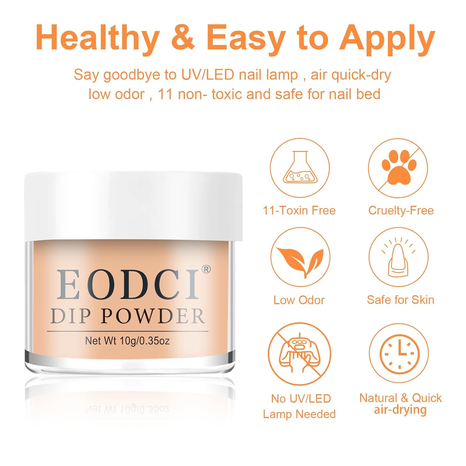 • 【No Lamp Needed】Eodci Nail Dipping Powder does not require UV/LED light to cure, is skin friendly while avoiding skin darkening and damage, safe and easy to use, suitable for beginners and professional nail salons.