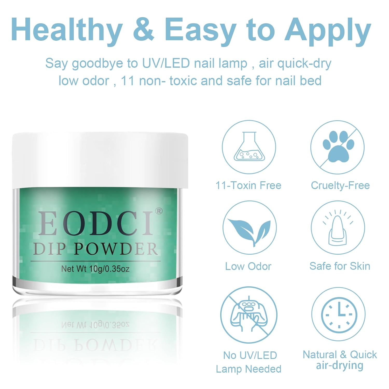 • 【No Lamp Needed】Eodci Nail Dipping Powder does not require UV/LED light to cure, is skin friendly while avoiding skin darkening and damage, safe and easy to use, suitable for beginners and professional nail salons.