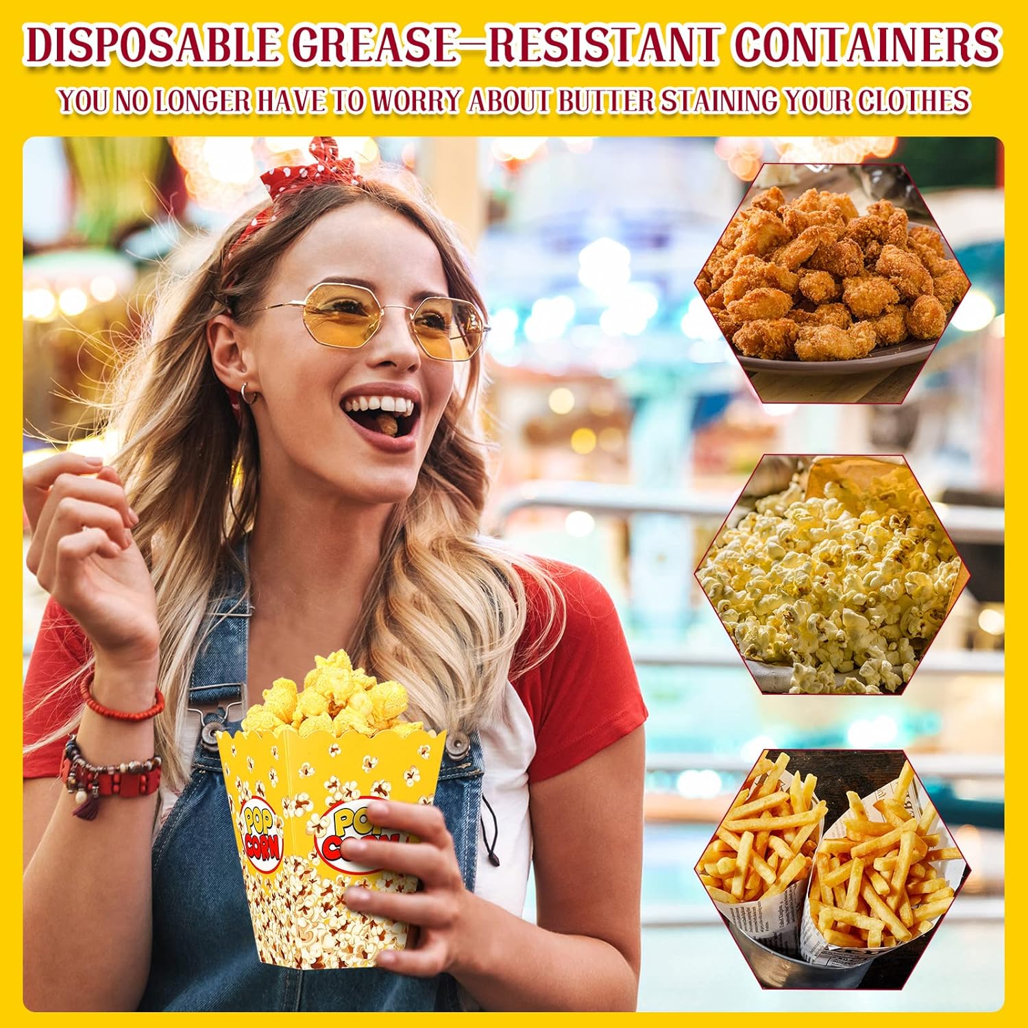 • Trendy and Interesting Design: the combination of bright yellow background, popcorn patterns and nice font adds to the overall sense of appetite and can bring excitement to people, retro, simple and stylish, the popcorn cups are very suitable for birthday parties, street fairs, plays and other fun celebrations