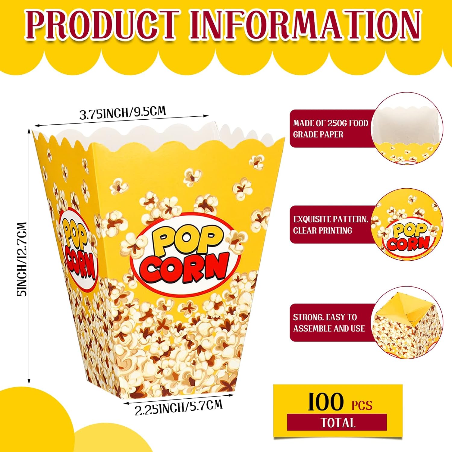 Panelee 100 Pack Popcorn Boxes for Movie Night 24oz Popcorn Disposable Paper Bucket Bags Bulk Snack Container Cups Holder for Christmas Party Carnival