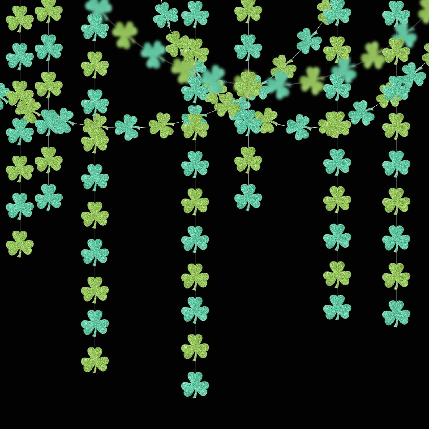 • 【Material】The material is eco-friendly double side gittler dark green and light green which don't drop glitter.You can cut to any length you want if you need shorter length.The shamrock are cut very neatly.