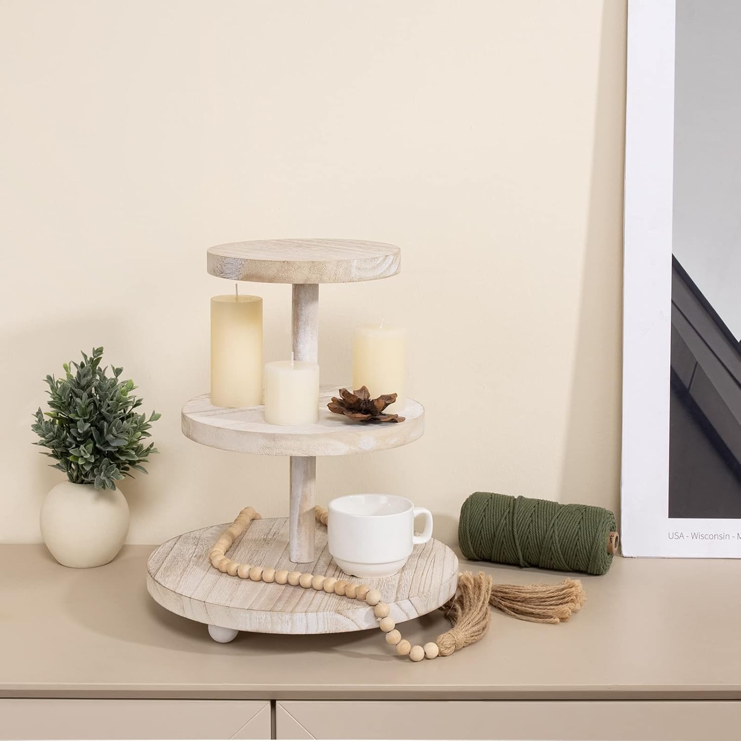 • Exquisite Small Round Legs Design : Exquisite Workmanship, each wooden cake stands with 3 rounded legs Each shelf has been carefully crafted to ensure stable placement on the tabletop,It’s reliable and safe to use bringing your cake,cupcake ,candle or crafts a delicate appearance