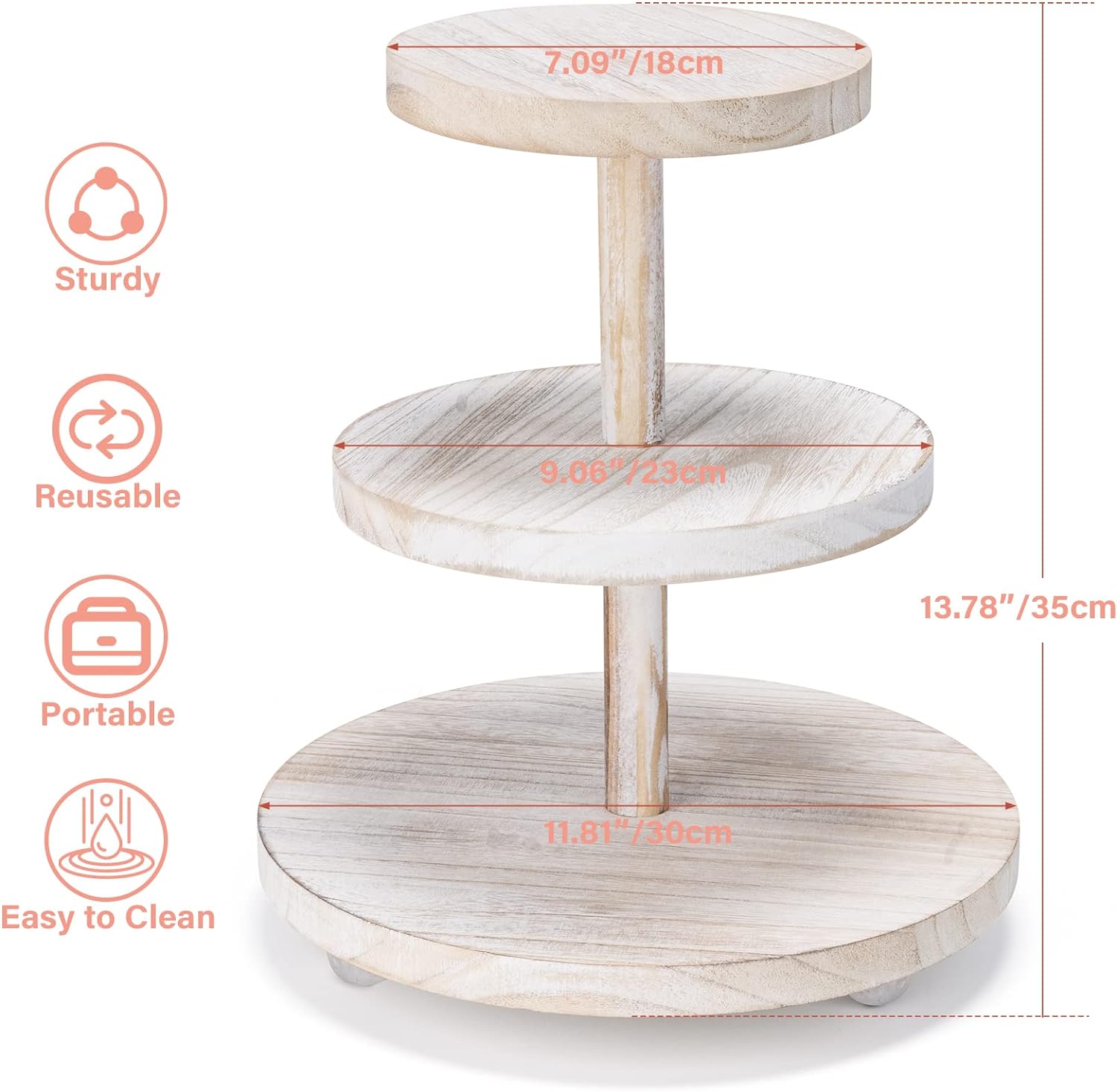 • Safely & High Quality & Reusable : 3 Tier Round Wooden Cake Tier Stand, made of high quality natural solid wood, sturdy and durable. The thickened tung wood is very sturdy and durable for long term use, corrosion resistant, not easily deformed and has a unique natural texture