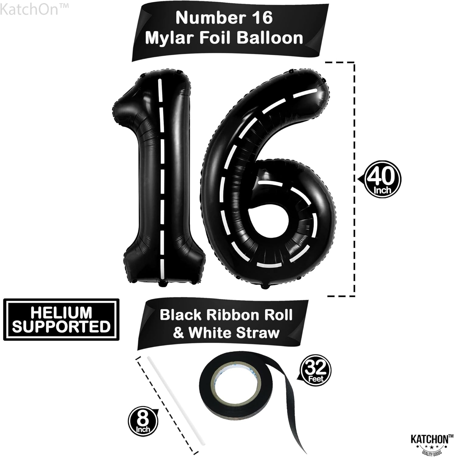 KatchOn, Giant Black 16th Birthday Balloons - 40 Inch | 16 Balloon Numbers, 16th Birthday Decorations for Boys | 16 Year Old Boy Birthday Decorations | Number 16 Balloon, Anniversary Decoration