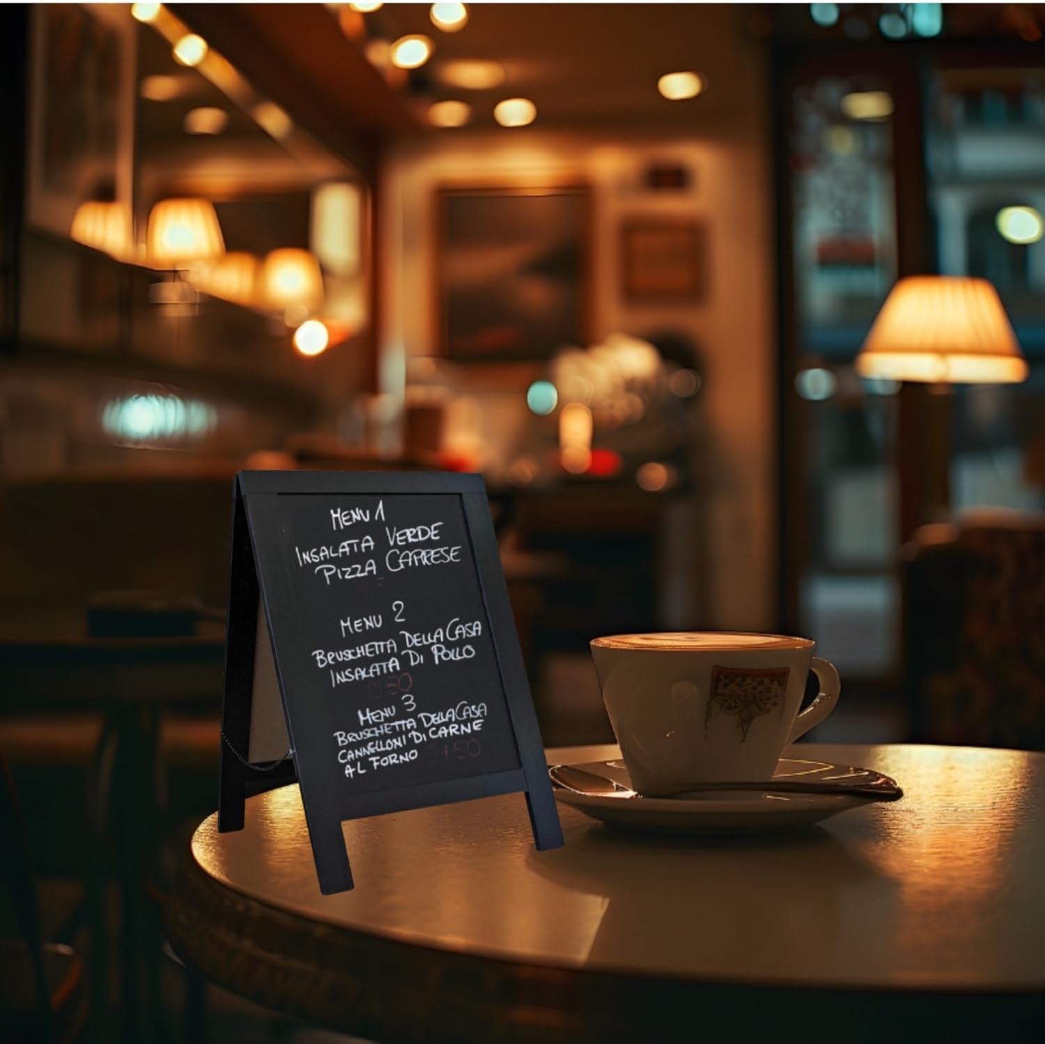 • Premium Set: The set includes a 7.5"*8.6" double-sided tabletop chalkboard and 8Pcs liquid chalk markers, so you don't have to spend any extra money to buy markers.