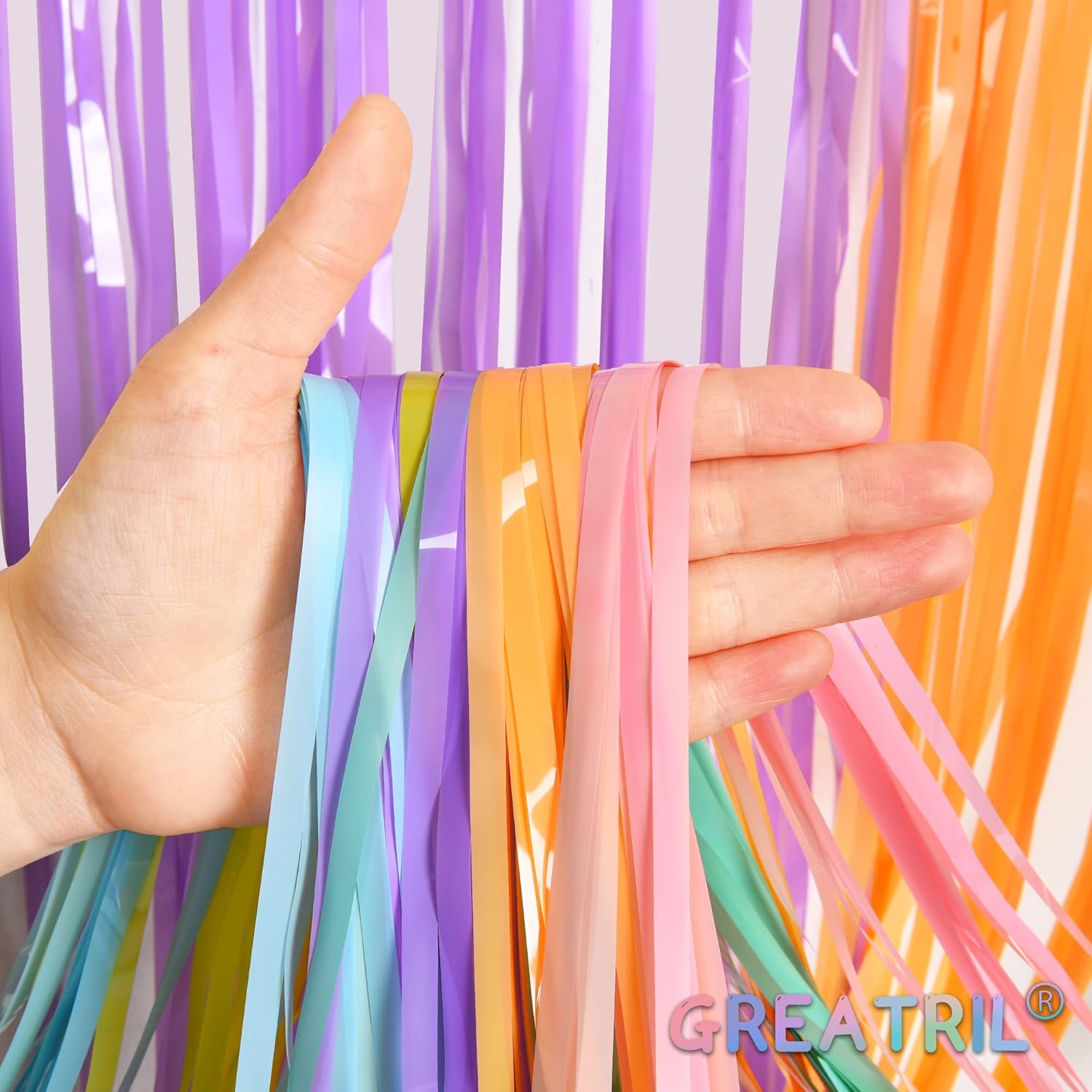 Pastel Tinsel Curtain Party Backdrop - GREATRIL Pastel Color Foil Fringe Curtain Photo Booth Streamers for Birthdays Easter Baby Bride Shower Unicorn Girls Party Decorations