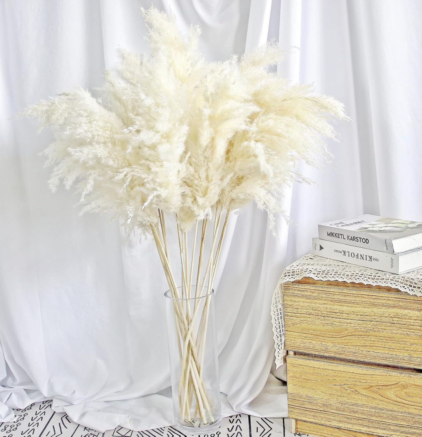 35-inch Tall White Pampas Grass Bouquet Decor - Boho Flowers and Feathers for Centerpieces, Perfect for Tall Floor Vase Fillers, Home Decor, Living Room, and Wedding Decor (20 Pcs)