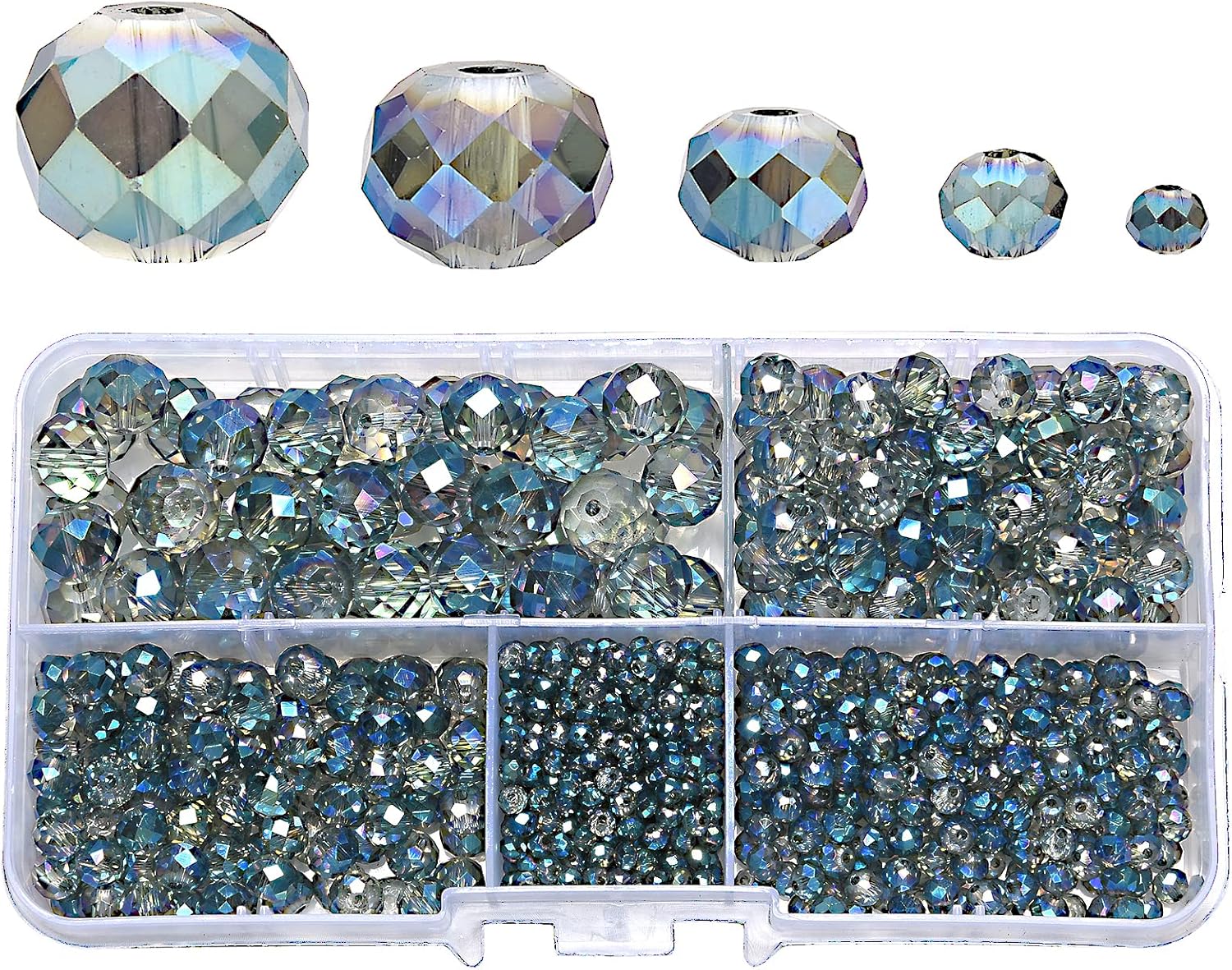 • 【PACKAGING and SIZE】Package includes 810Pcs clear green rondelle crystal beads in 5 different sizes ,400pcs 2mm,200pcs 4mm,100pcs 6mm,65pcs 8mm and 45pcs 10mm faceted rondelle crystal glass beads.Sufficient quantity and various sizes to meet your various needs, you can combine them together to create delicate handicrafts according to your own preference.In addition, we provide you with some stretchy cord and add an organza bag.Let your family and friends enjoy DIY happy time together.