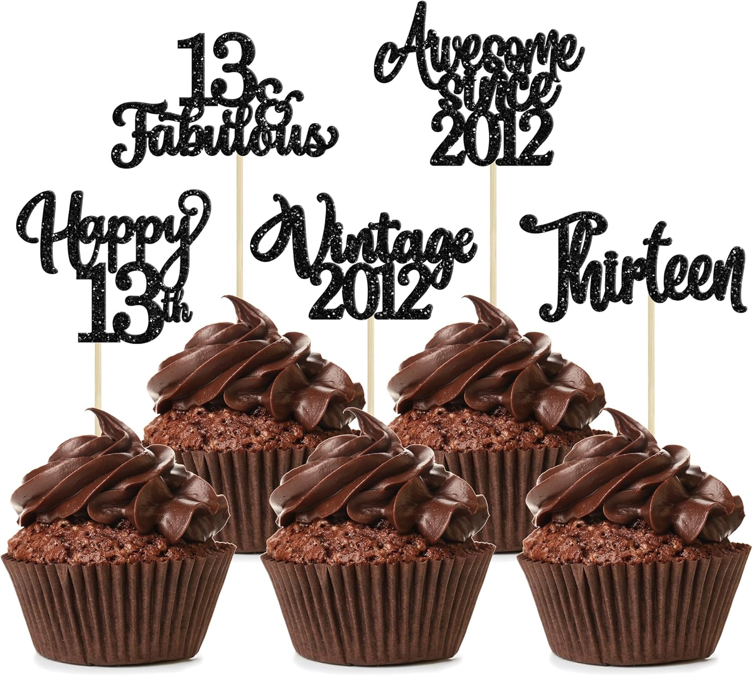 • ๐Ÿ’–ใ€Birthday Party Suppliesใ€‘: 30Pcs Number Cupcake Toppers are perfect for vintage 2012 theme party, 13th birthday theme party, 13th wedding anniversary theme party๏ผŒcheers to 13 years theme party cupcake decorations, they will make your cupcake more attractive and bring the fun to your party, make your guests fall in love with them!