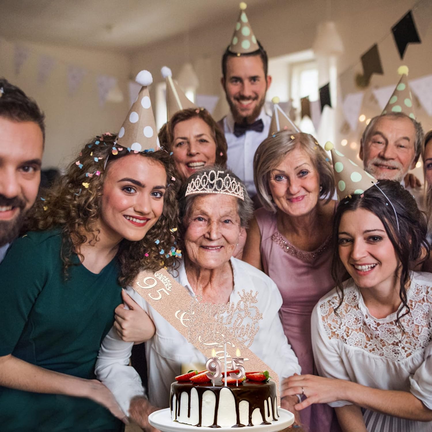 95th Birthday Decorations for Women Including Birthday Sash, Crown, Numeral Candles and Cake Topper, Rose Gold Party Decor Supplies