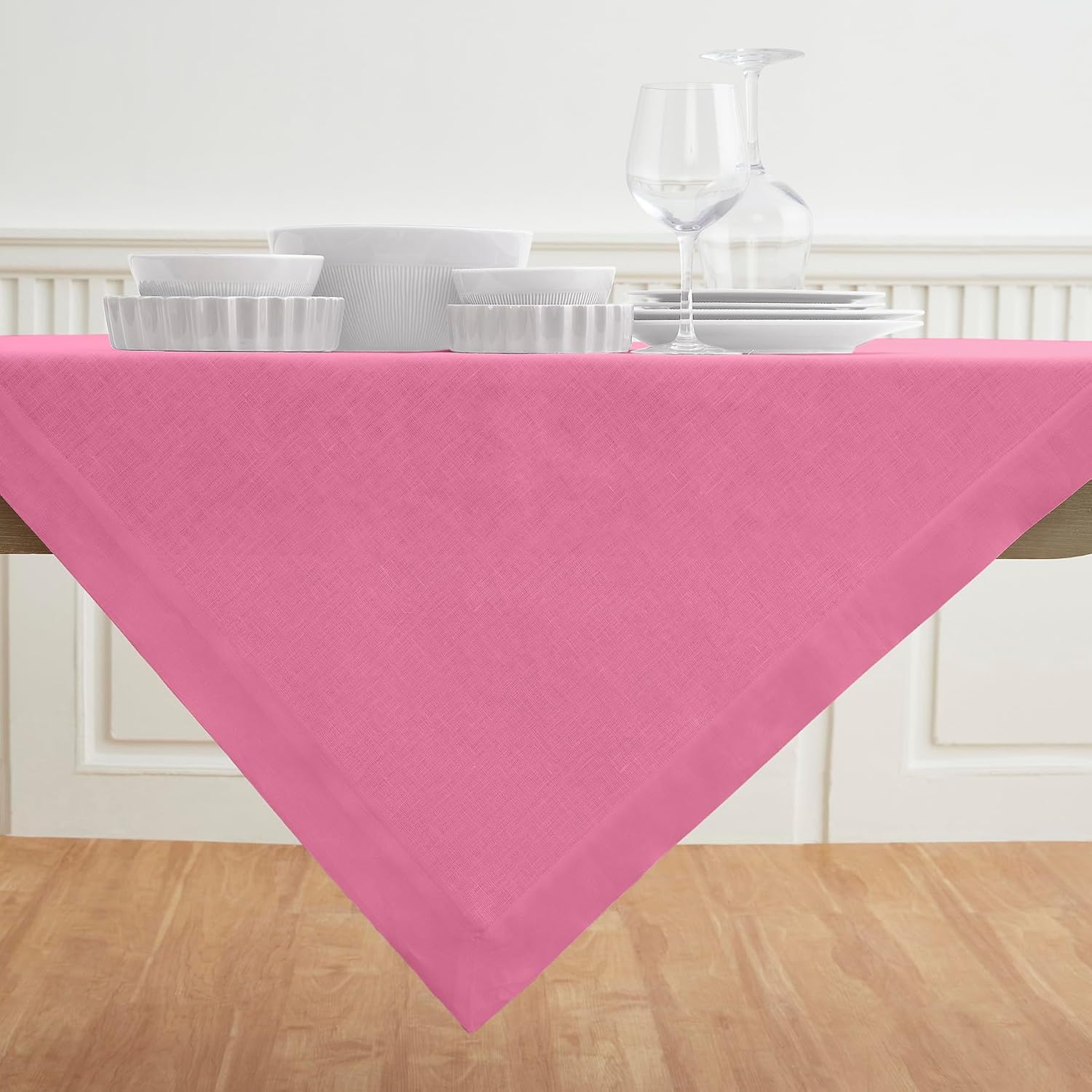 Solino Home Linen Square Tablecloth 52 x 52 Inch - 100% Pure Linen Flamingo Pink Table Throw - Fete, Machine Washable Table Cloth for Halloween