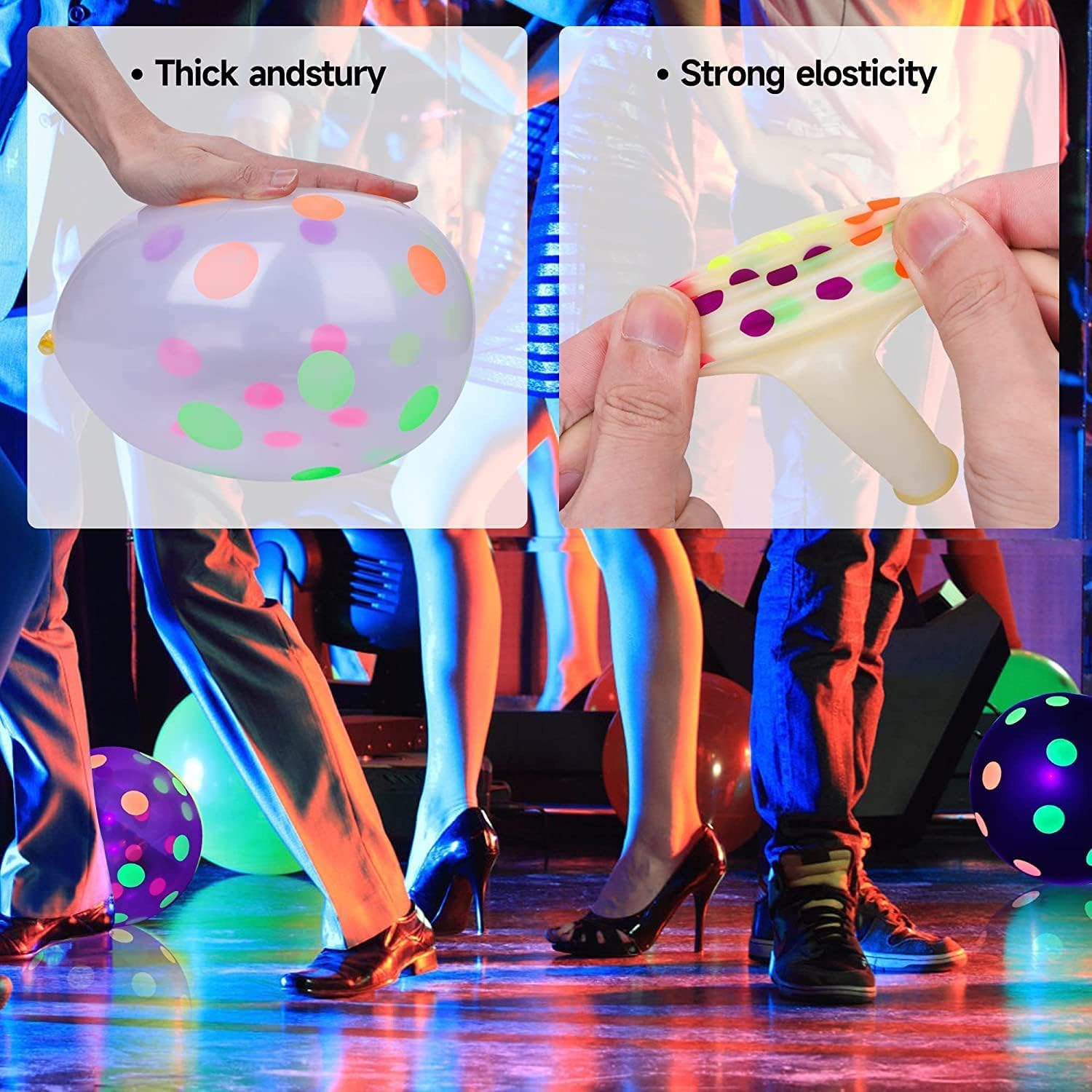 • ★【PLEASE NOTE】: Neon colored balloons will not glow in the dark without UV black light response. If you have any questions, please feel free to contact us