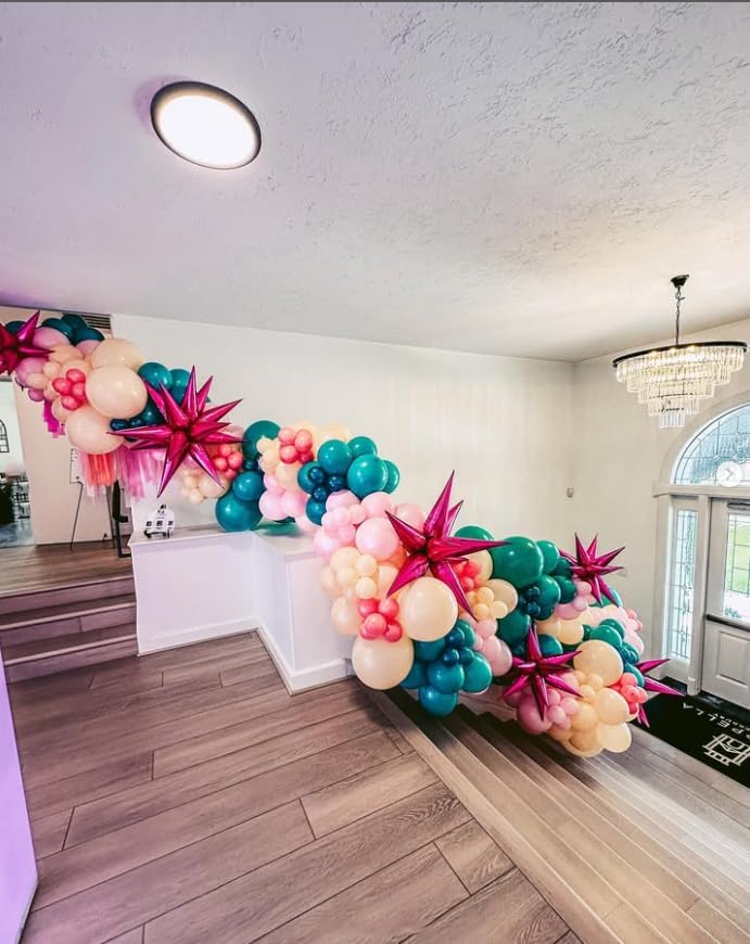 • Packing list:balloon:36pcs cone shaped balloons (12pcs cone balloons can make 1pc explosion star balloon = 3 pcs 3D foil explosion stars ) + accessories:1pc ribbon