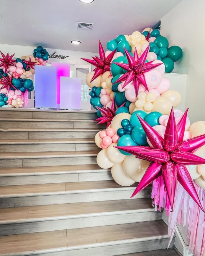 3pcs 26inch babe pink Star foil balloons.babe Explosion Star burst star balloon-Spike cone balloon for birthday party decorations,wedding,Bachelor party