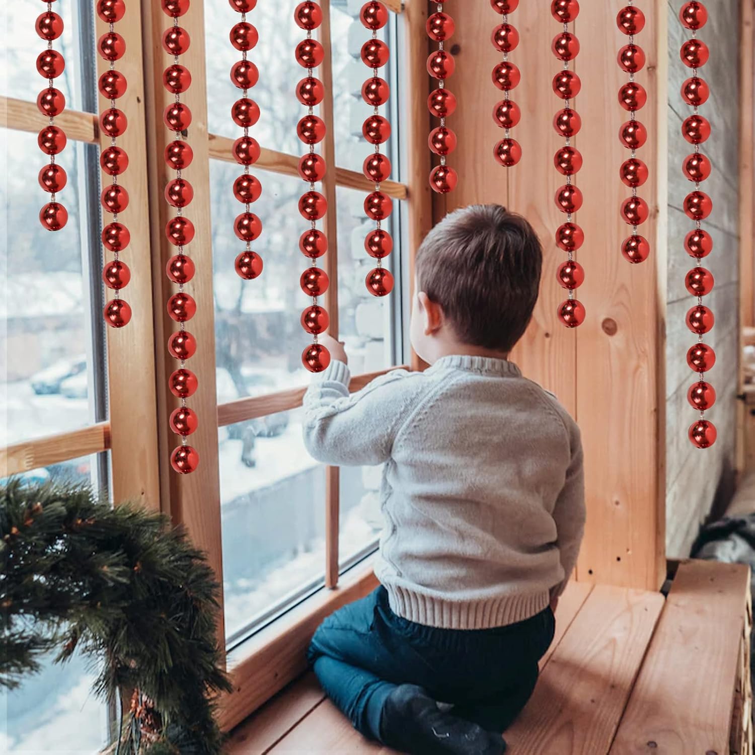 Faux Red Pearl Beads Garland - 10mm Christmas Tree Beads, 11 Yards Red Pearl Strands Spool for Wedding Party & Christmas Tree Decoration