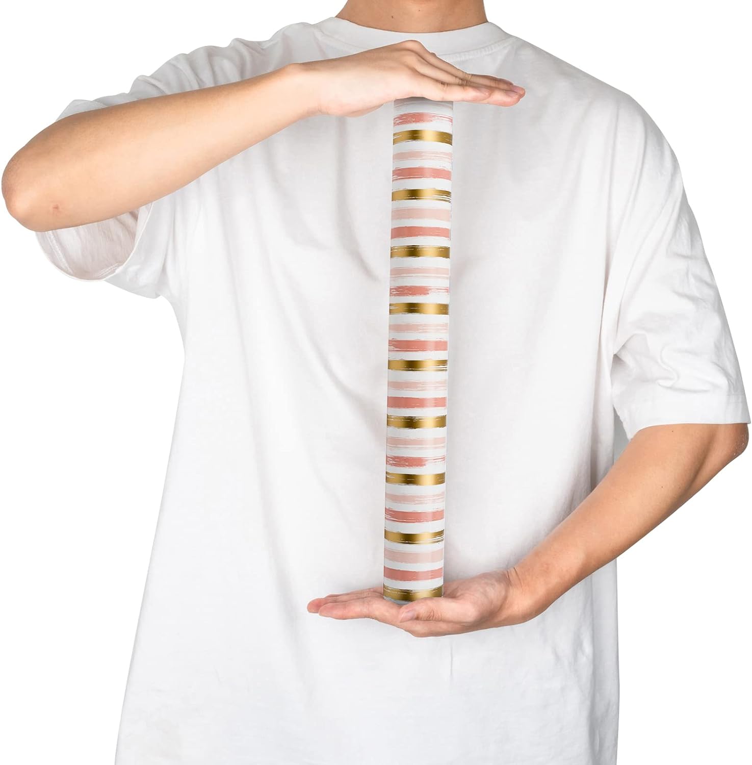 • REVERSIBLE: Pink and gold lines design printed on one side, solid peach pink printed on the reverse. Two different designs make unique and varied gift presentations easy