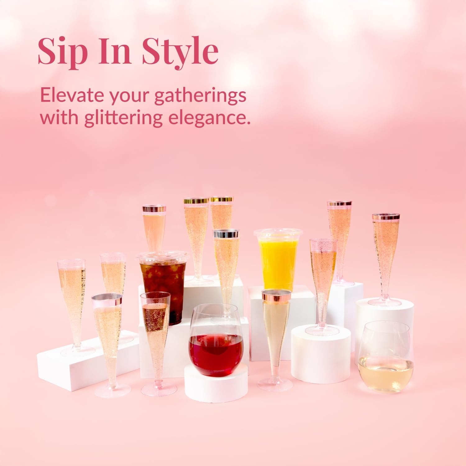 • ENJOY YOUR FAVORITES: With an ergonomic design, our plastic champagne flutes allow you to drink your favorite beverages with great comfort: mimosas, bloody marys, cocktails, mixed drinks, and more You can even use them for sandaes and desserts