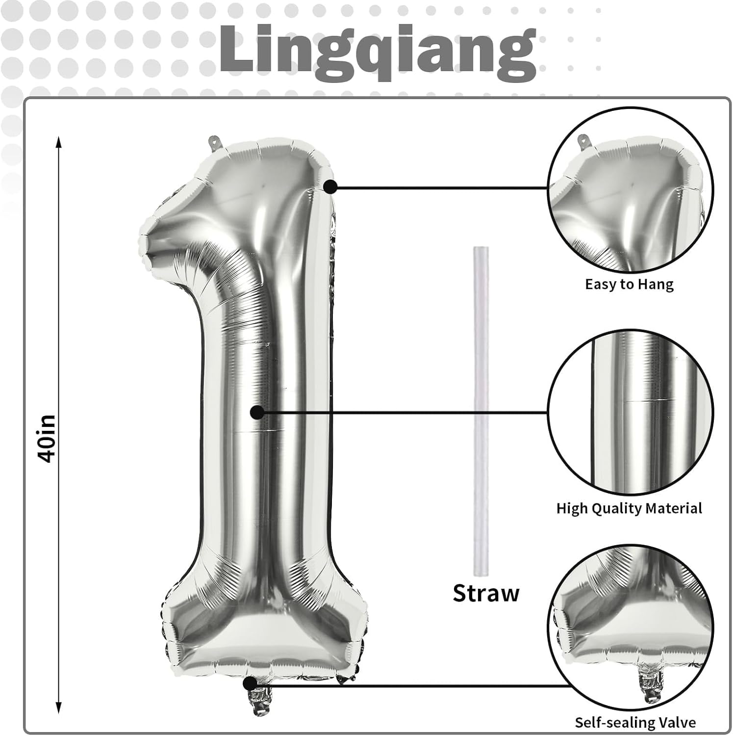 • πŸŽ‰ Silver Number 1 Balloon πŸŽ‰ - You will get 1pc 40 inch mylar foil number 1 balloon and 1pc straw. Perfect for 1st 10th 12th 13th 15th 16th 17th 18th 21st birthday or anniversary party decorations supplies.