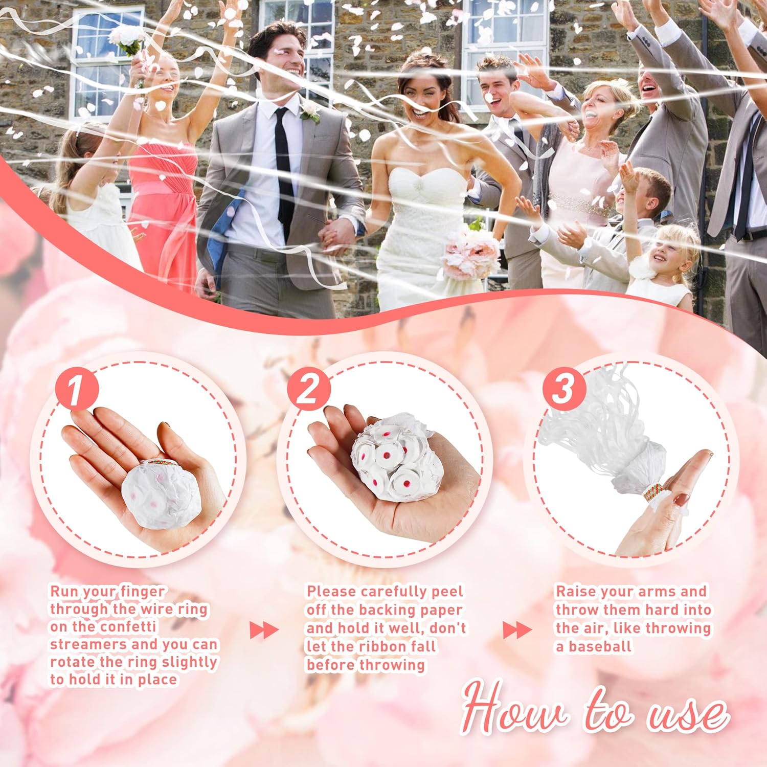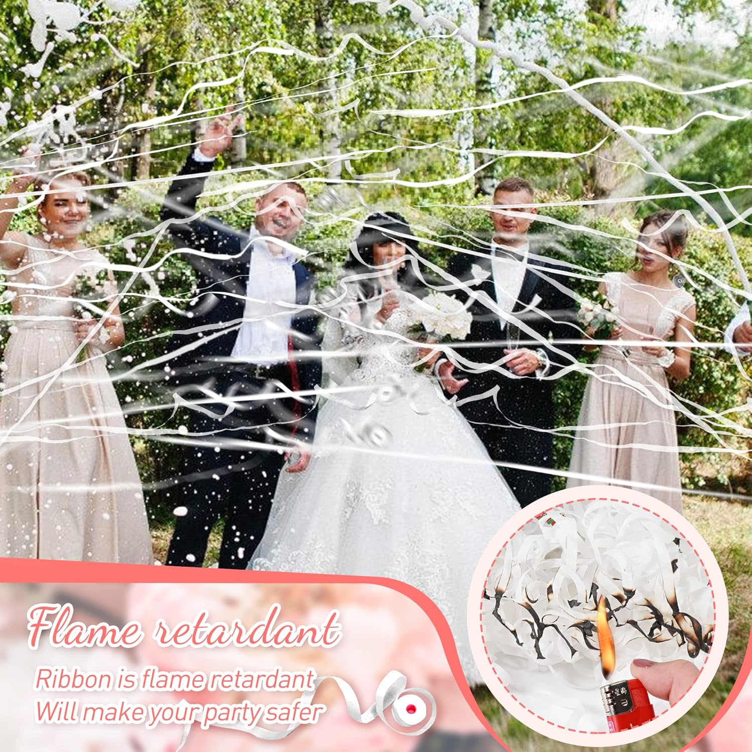 • 48 Pack/30 Ribbons/17 FT:Contains 48Pack white confetti poppers.Each party poppers ribbons with a total of 30 thin ribbons,the length can reach 17 FT, invite guests to throw ribbons together!Perfect for creating a wedding outlet