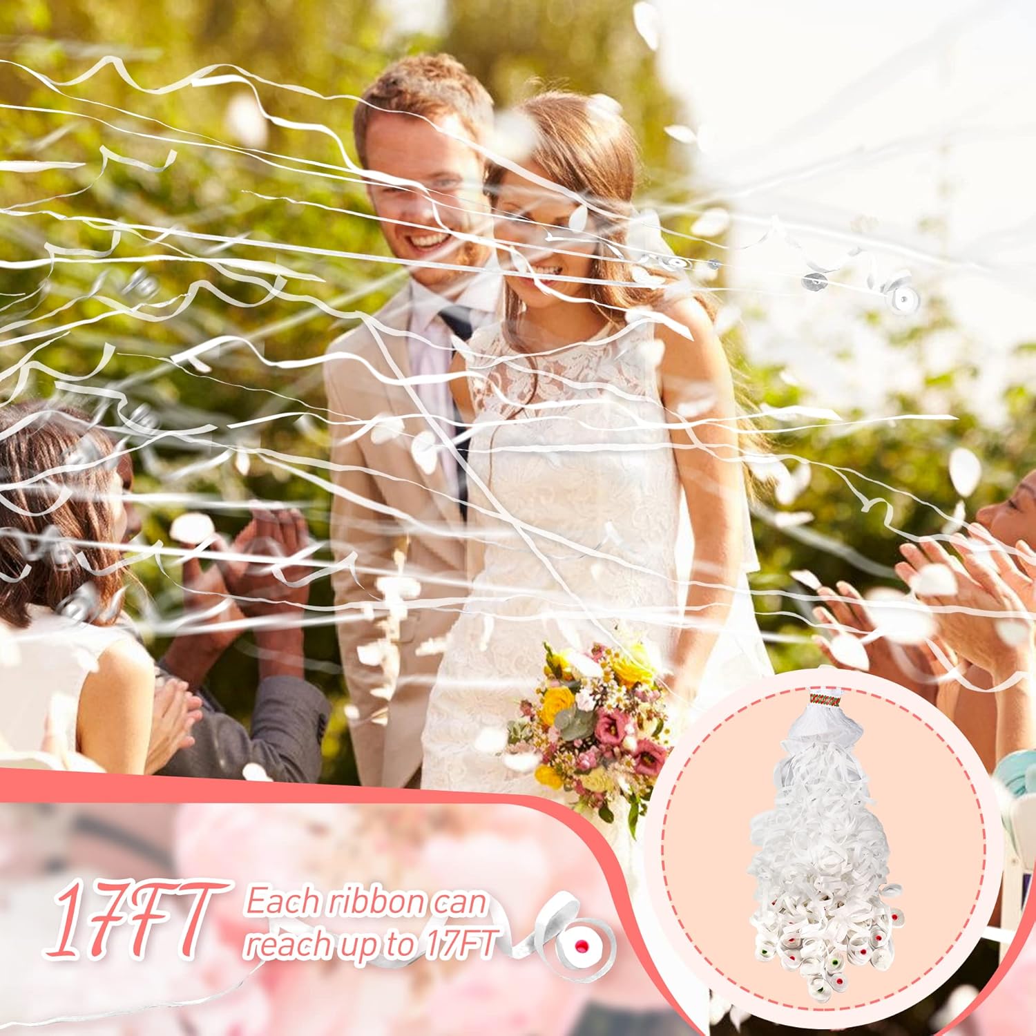 • 24 Pack/30 Ribbons/17 FT:Contains 24 Pack poppers party favors.Each poppers party favors ribbons with a total of 30 thin ribbons,the length can reach 17 FT, invite guests to throw ribbons together!Perfect for creating a wedding outlet