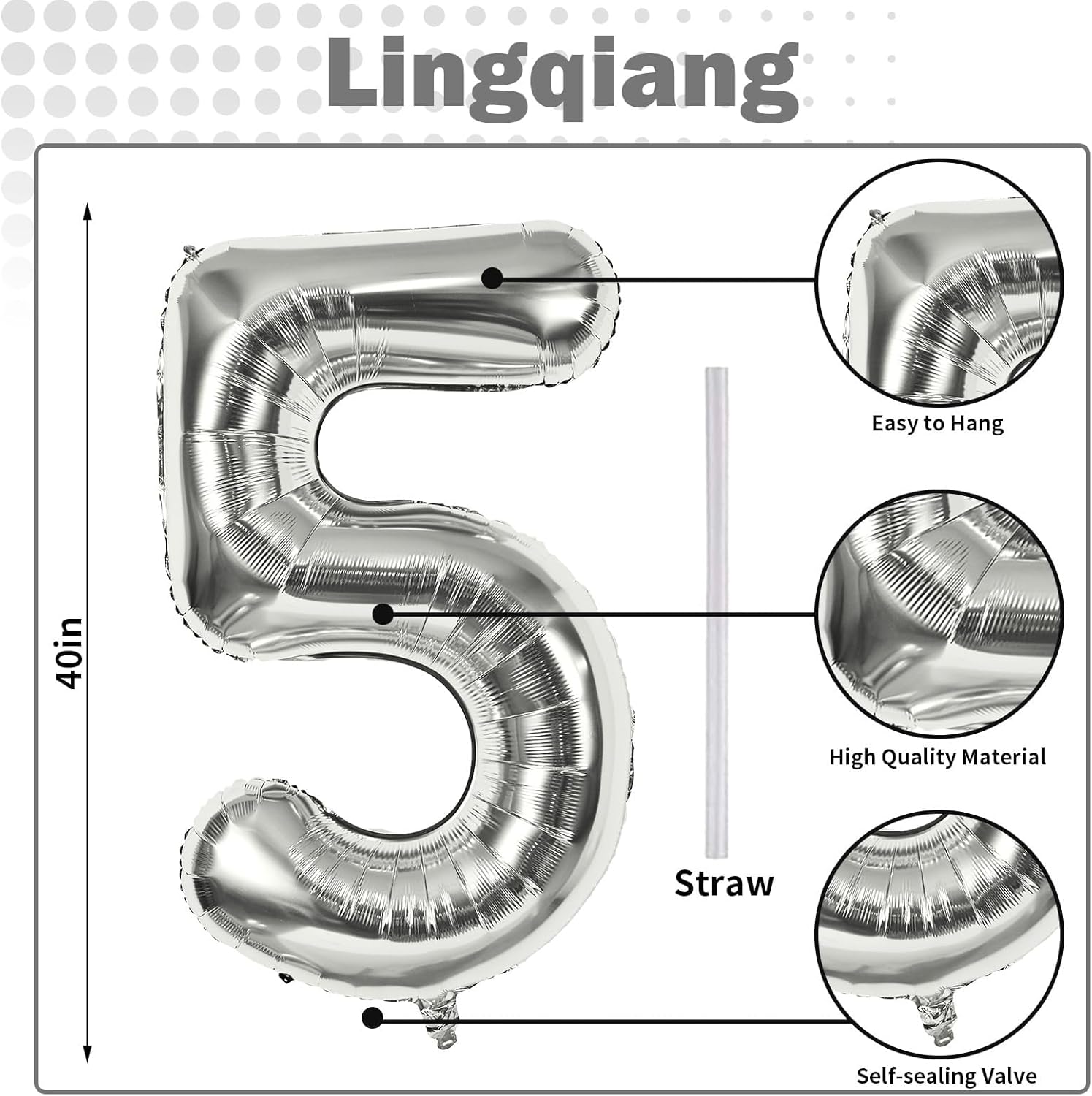 • πŸŽ‰ Silver Number 5 Balloon πŸŽ‰ - You will get 1pc 40 inch mylar foil number 5 balloon and 1pc straw. Perfect for 5th 15th 25th 50th 45th birthday or anniversary party decorations supplies.