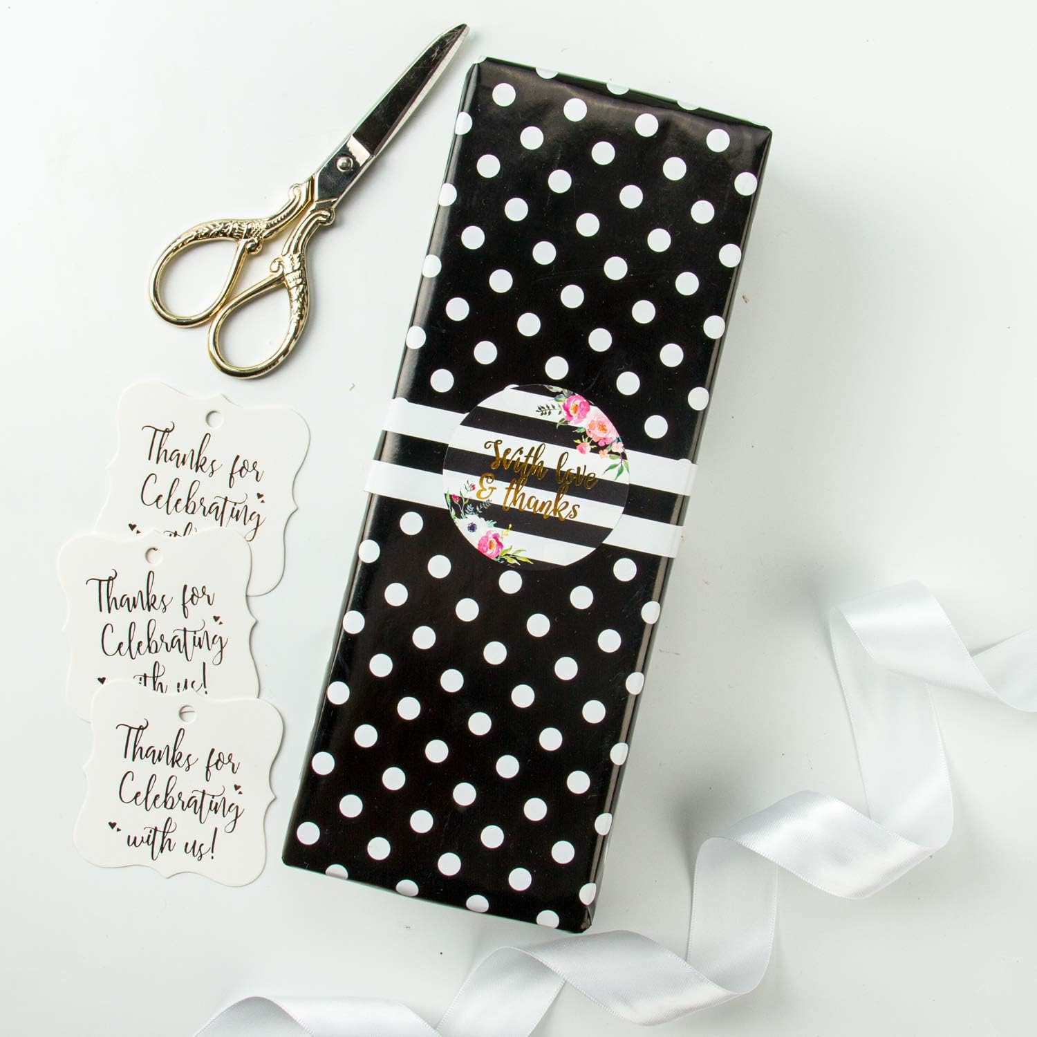 • REVERSIBLE: A solid black side and a black/white polka dot side. Two different classic designs make beautiful and varied gift presentations easy.