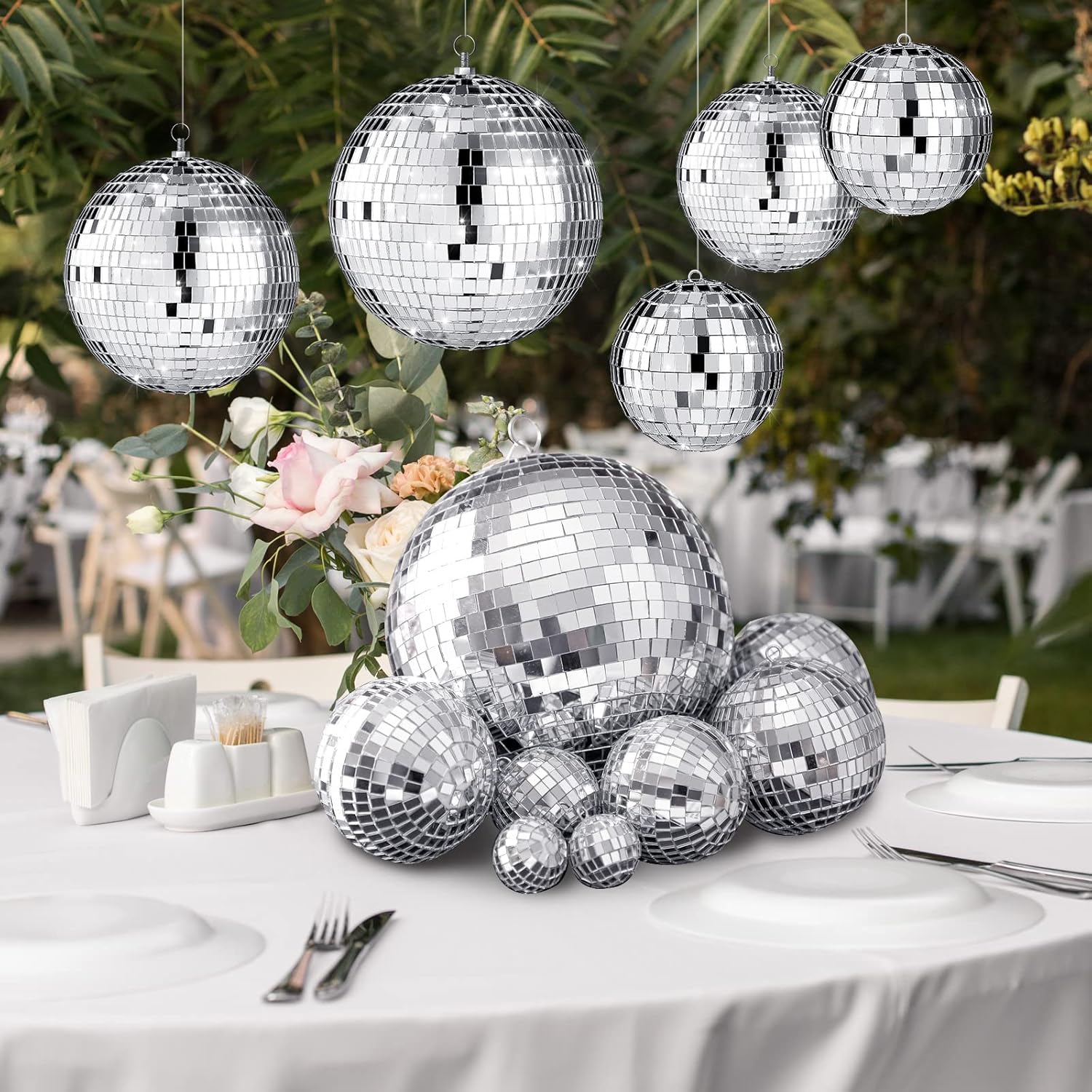 • Disco Ball Set: you will receive 8 pieces of disco balls with hanging rings in 4 sizes, respectively 1 piece of 12 inches extra large disco ball, 1 piece of 8 inches large disco ball, 2 pieces of 6 inches middle disco balls and 4 pieces of 4 inches small disco balls, you can use them in combination or individually