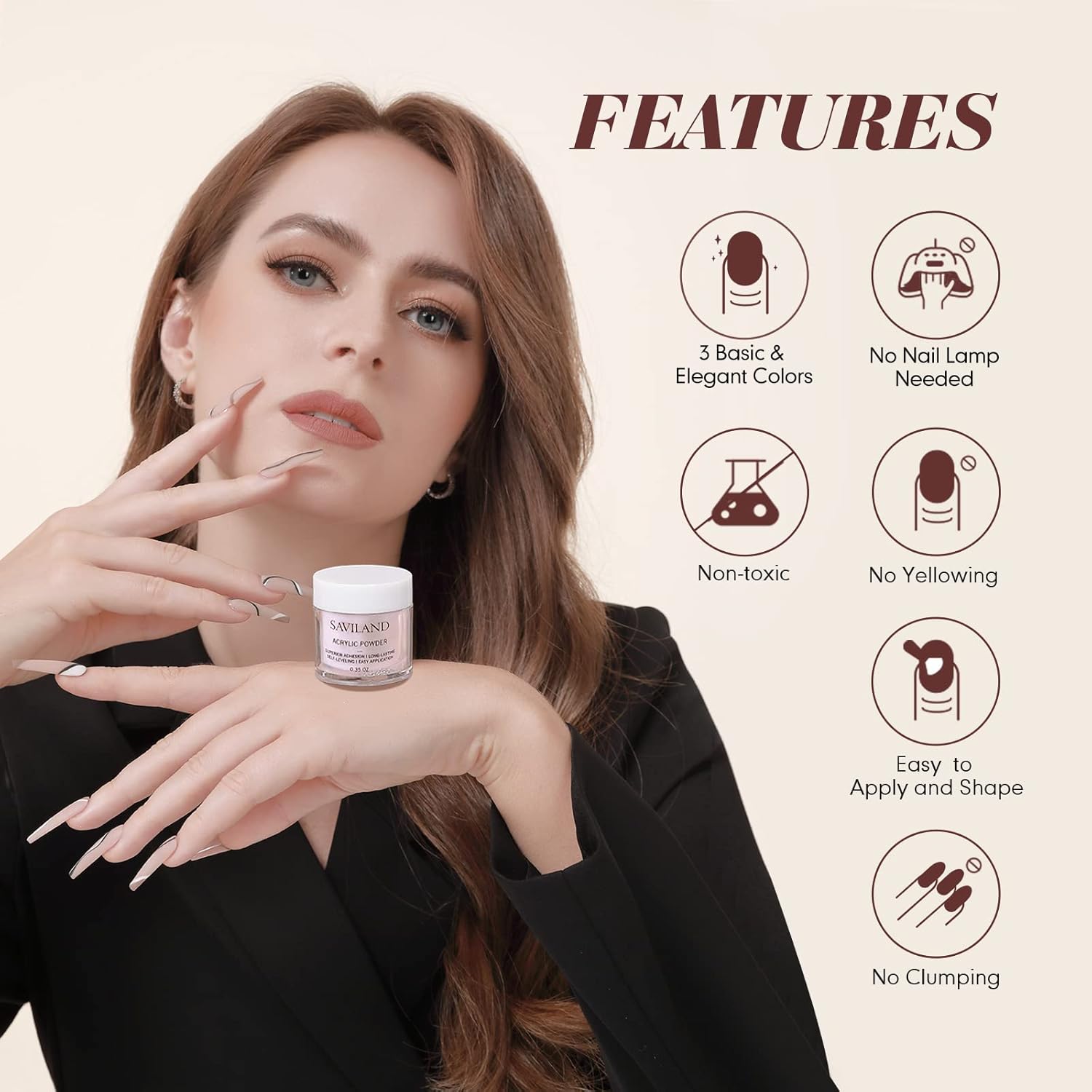 • EASY TO APPLY & AIR DRY NATURALLY: Saviland acrylic powder is ultra fine and easy to apply with acrylic nail brush and acrylic liquid, perfect to practice with nail hands, it is easy to shape and self-leving. No nail lamp neede, no worry to darken your skin. The acrylic nails create a protective and hard layer to cover and protect your natural nails after air dry naturally, which will not easily lift, split or peel off. The finish effect can last for at least 28 days.