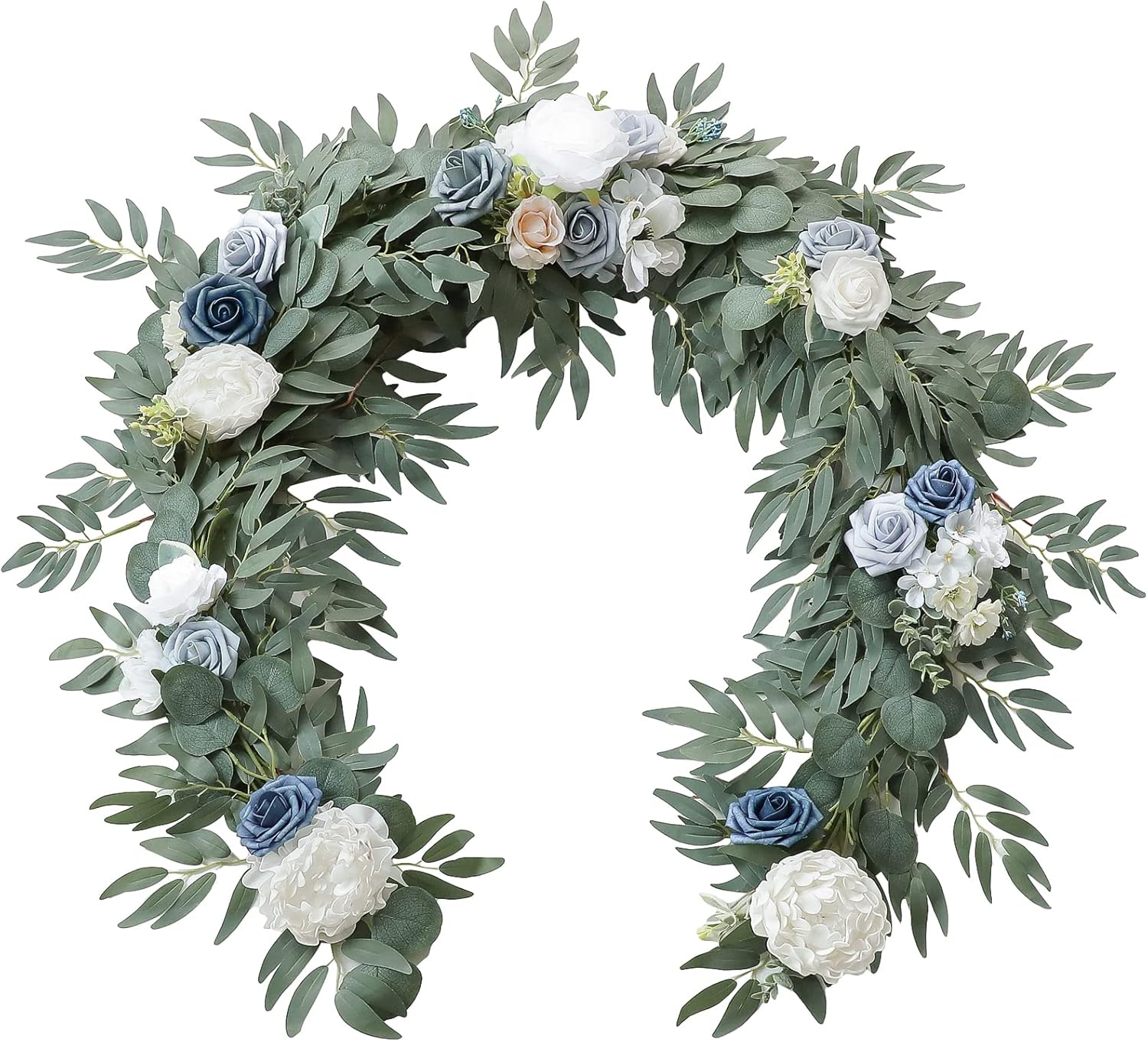 • ❤️Eucalyptus and Willow Flower Garland: Package includes a 6ft garland that perfectly blends realistic and natural flowers with eucalyptus leaves and willow. It will seamlessly create a romantic and charming atmosphere for your wedding.