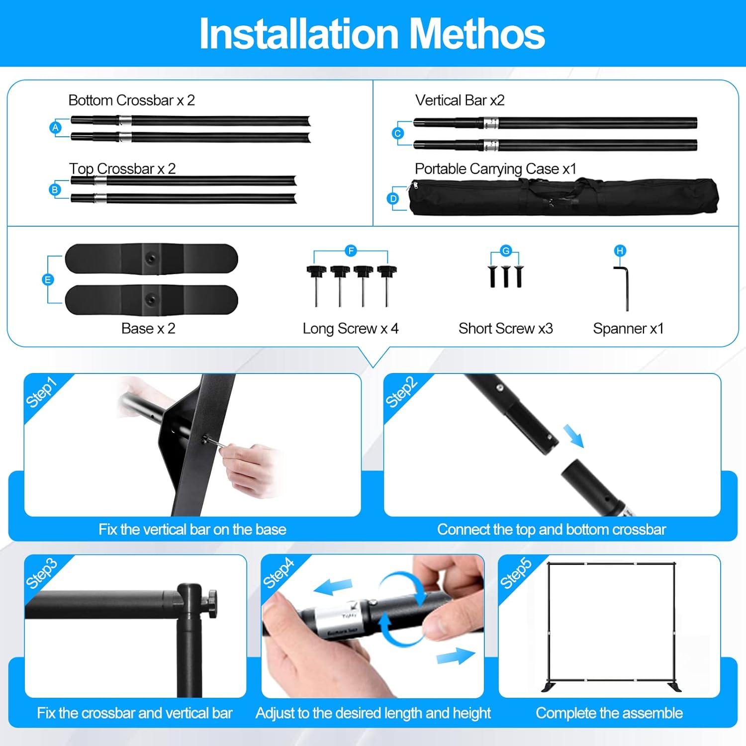 • 【Upgraded Professional Banner Stand】The backdrop banner stand is made of aluminum alloy, locking System Upgrade, the screw fastening connection of the crossbar adopts a widened design to prevent the middle of the cross bar from sagging. More stable than ordinary support bar.