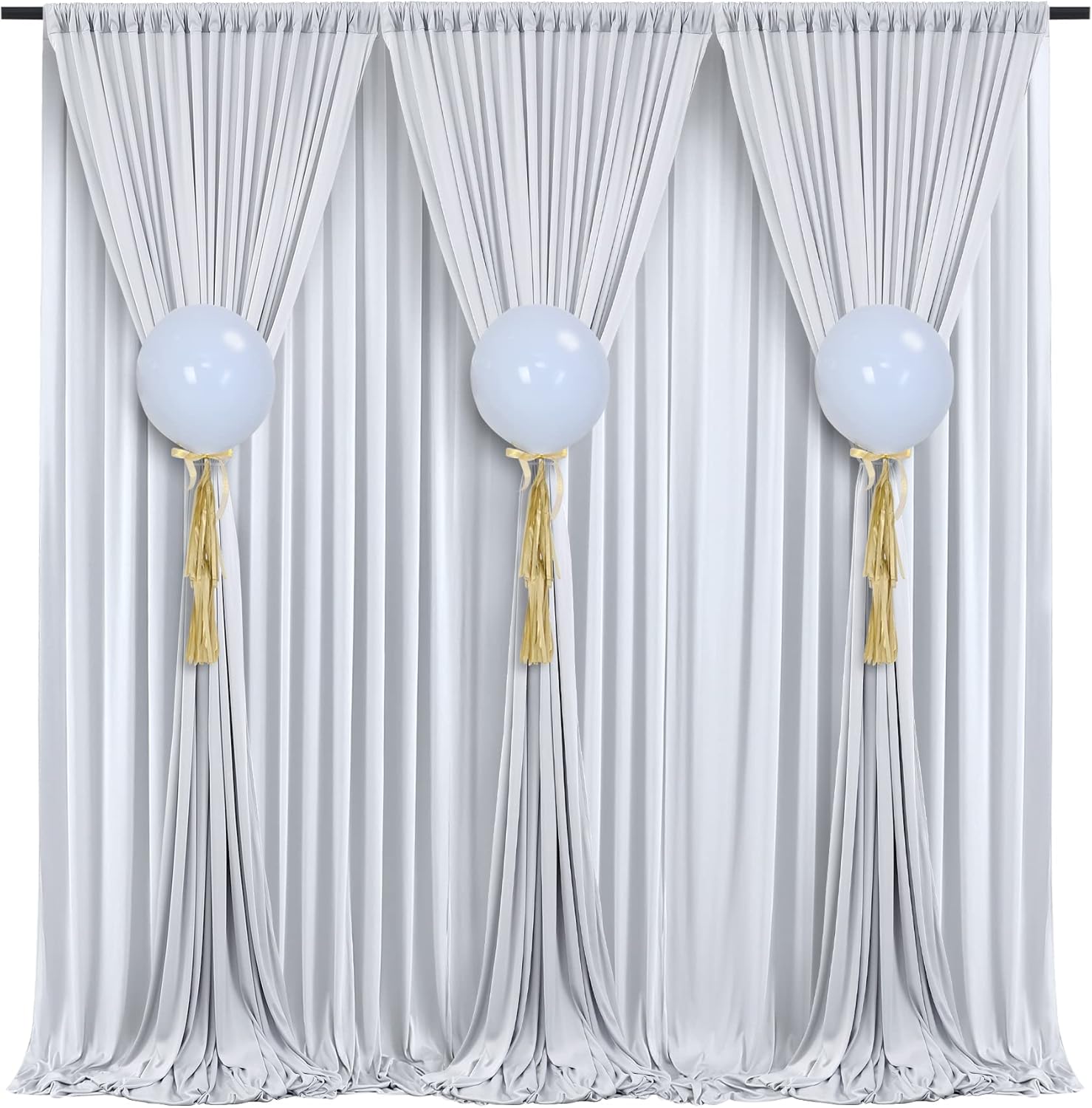 30 ft x 10 ft Wrinkle Free Silver Backdrop Curtain for Parties, Polyester Silver Grey Backdrop Drapes 6 Panels 5x10ft for Baby Shower Photoshoot Engagement Wedding Birthday Photography Background