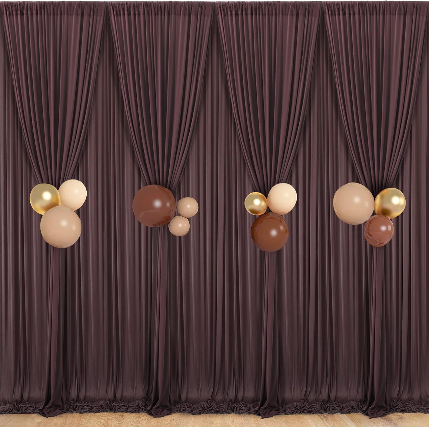 • Backdrop Curtain Panels: Your package will come with 8 panels brown photography backdrop drapes. Each background panels measures 5ft width and 10ft height.Entire backdrop curtain measures 40ft x 10ft.