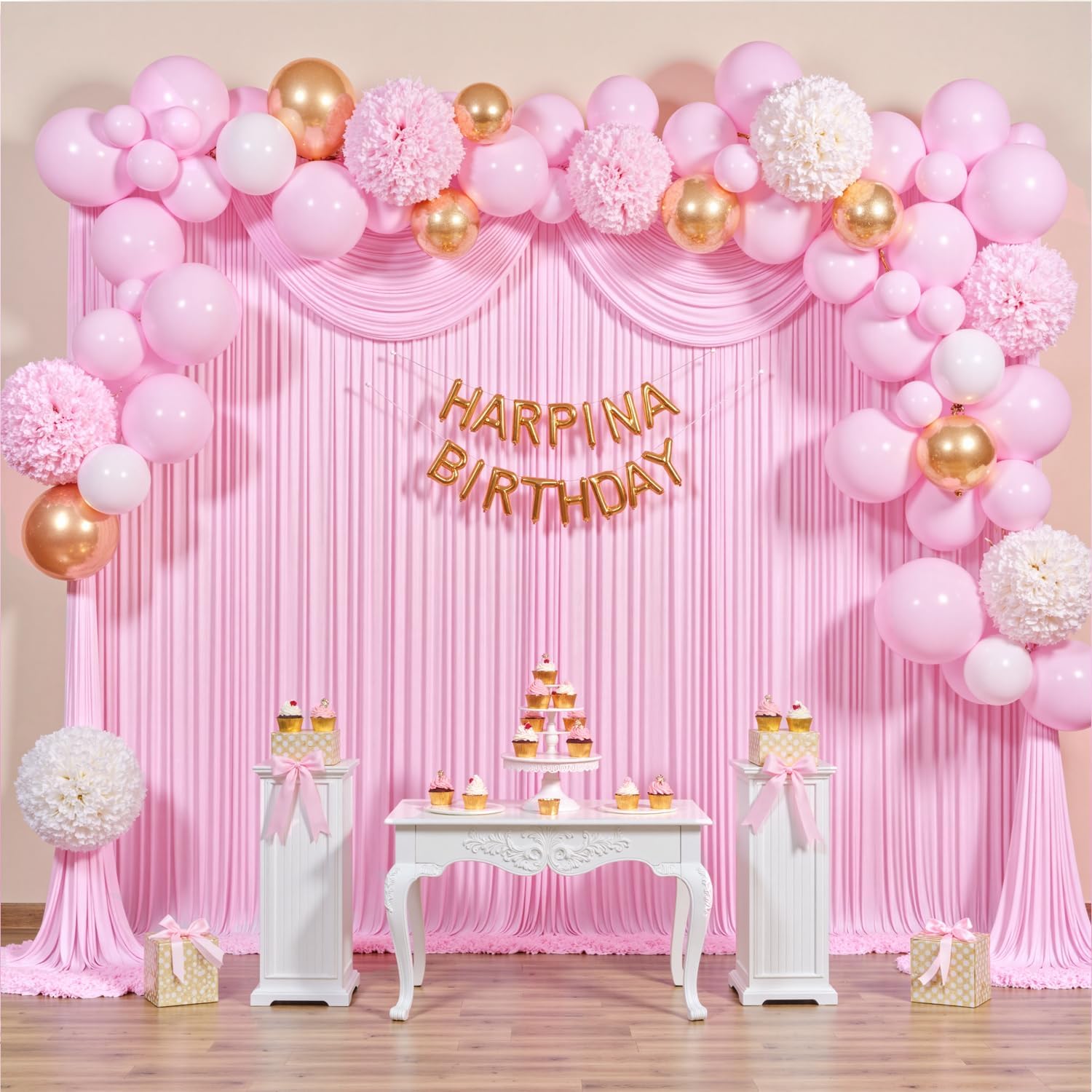 40 ft x 10 ft Wrinkle Free Baby Pink Backdrop Curtain for Parties, 8 Panels 5ftx10ft Polyester Photo Backdrop Drapes for Baby Shower Birthday Party Photography Wedding Backdrop Stand